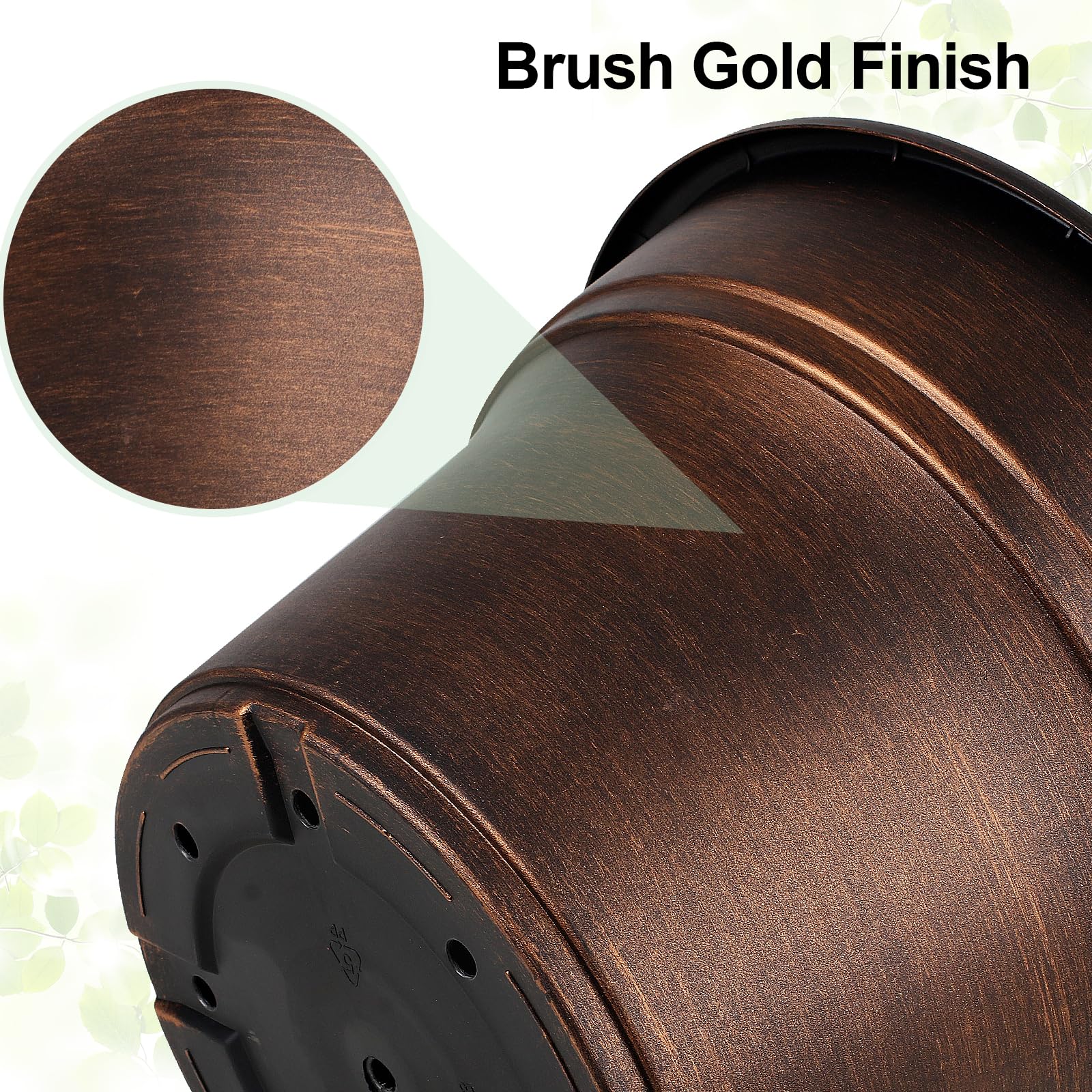 10 Inch Planters Plant Pots Indoor Outdoor, 4 Pack Plastic Flower Pot for Indoor Plants with Drainage Holes & Trays, Resin Decorative Container Sets with Saucer for House Garden Copper