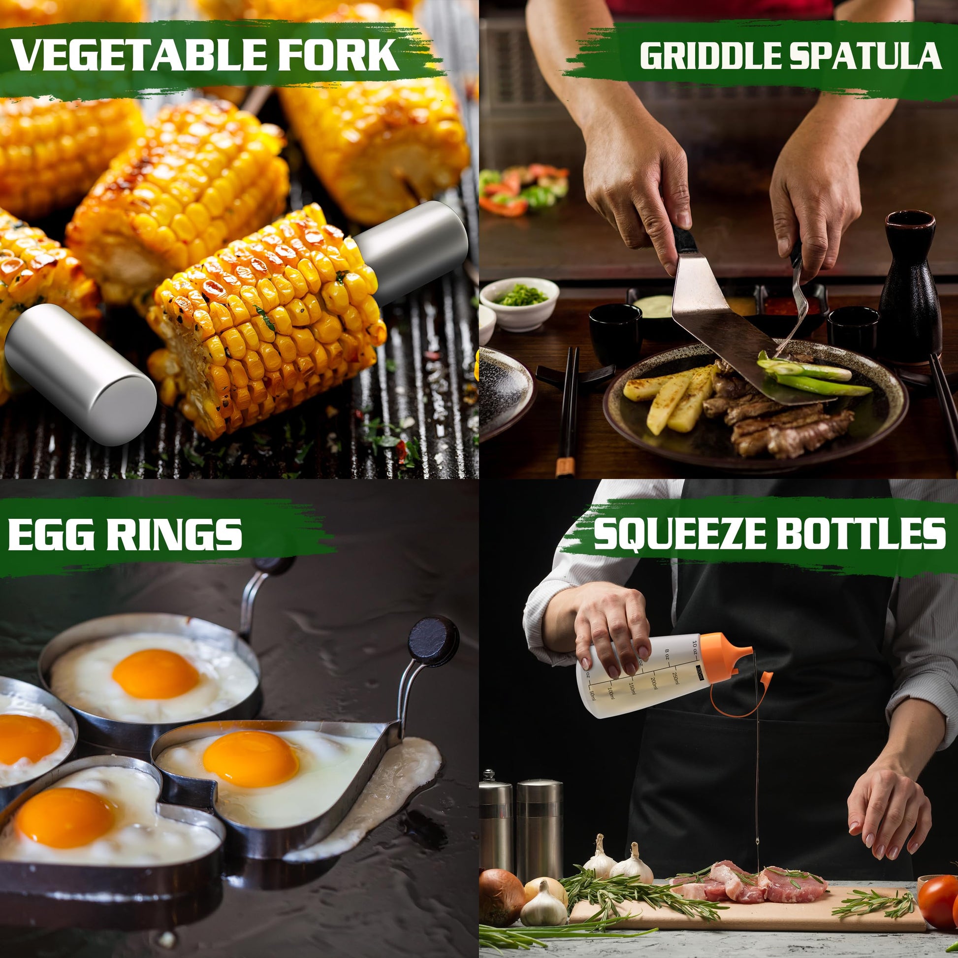 • 【Professional Griddle Tools】:This set of grill tools with grill scraper, spatula and grease bottle will help you grill as easily as a restaurant chef even if you are a beginner griller. It will make everyone happy at your BBQ, weeknight party or everyday meal!