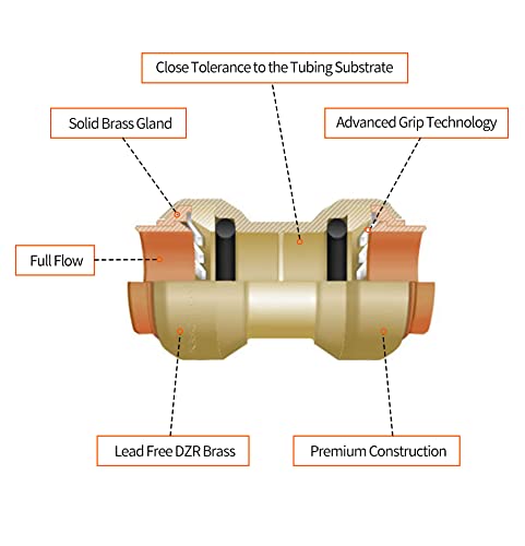 • 【Easy to Install】- Pushfit straight coupling kits are easy to install, and they are removable and reusable by included disconnect clip. You just need to insert the pipe into the fitting deep enough by hands without soldering, clamps or glue required. They can even be rotated after assembly for easier installation in tight spaces.