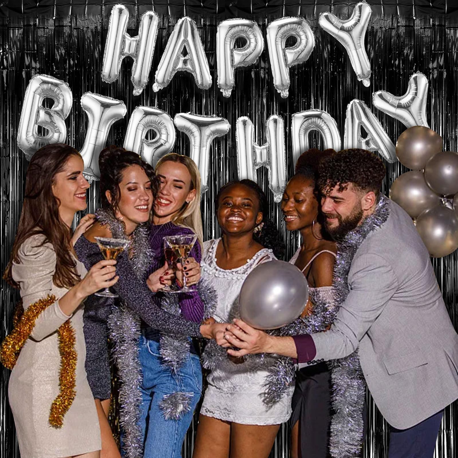 2 Pack Black Party Streamers Backdrop Tinsel Foil Fringe Curtains Halloween Party Decorations Birthday Wednesday Twilight Party Decorations Graduation Wizard Party Supplies