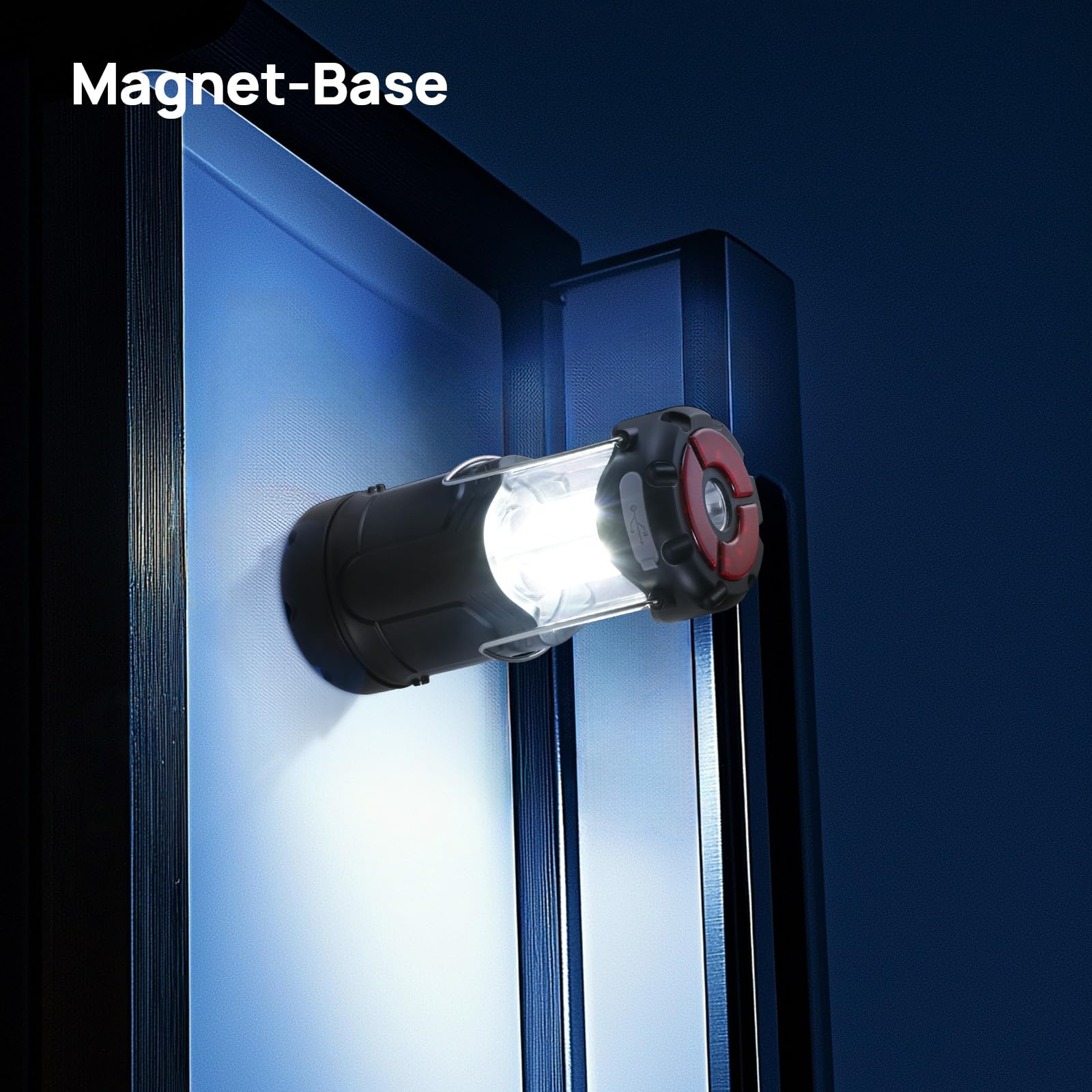 • 4 Lighting Modes : An excellent lighting solution for both directional and area lighting applications. /6000K White COB Lantern/ pop up the top for 360 degrees of light; /6000K White Flashlight/ simply press side switch for getting directional lighting; /Red Warning Light(Strobe & SOS)/ Red lights on top flashes slowly or fast, making you secure and noticeable