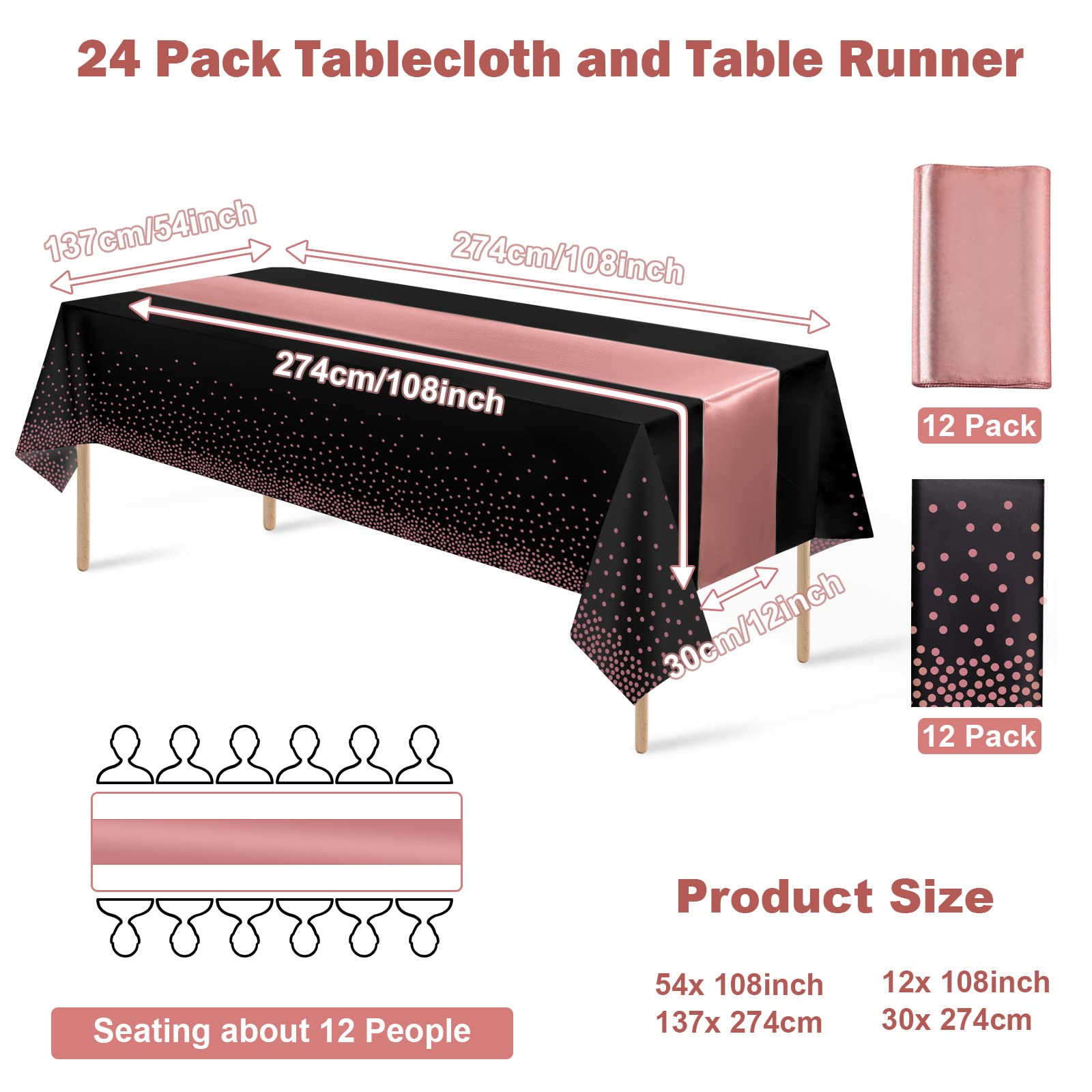 • What you will get: the package includes 12 pcs black and rose gold confetti dot plastic tablecloth and 12 pcs rose gold satin table runner, specific color as the picture shown, nice combination for you to use in daily life or important occasions enhancing the atmosphere for your event.