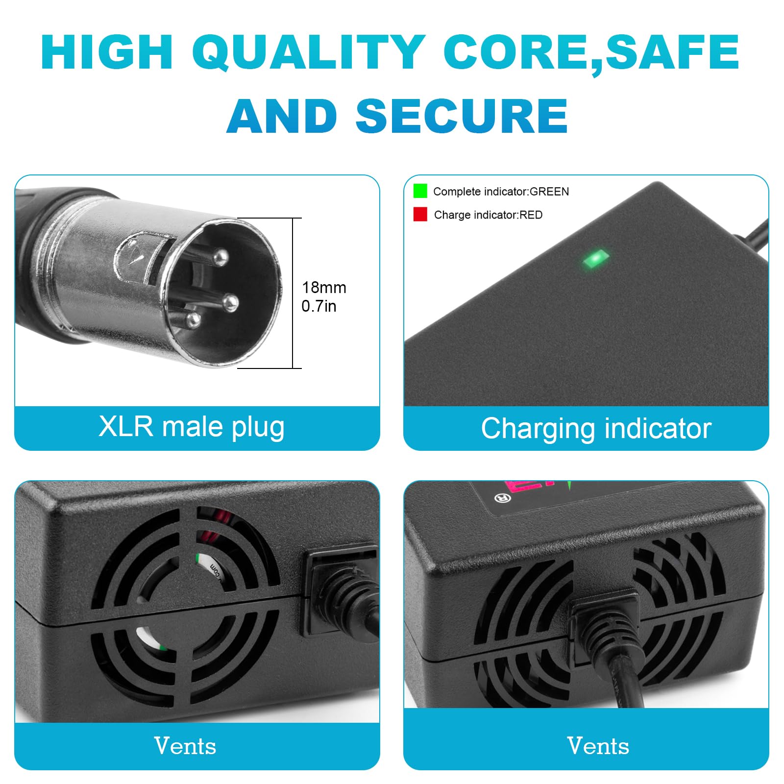 24V 5A 3-Pin Male XLR Connector Battery Charger for Lakematic, Pride Mobility, Jazzy Power Chair, Drive Medical, Golden Technologies, Shoprider, Rascal 200T/500T/301 PC 24BC5000TF-1