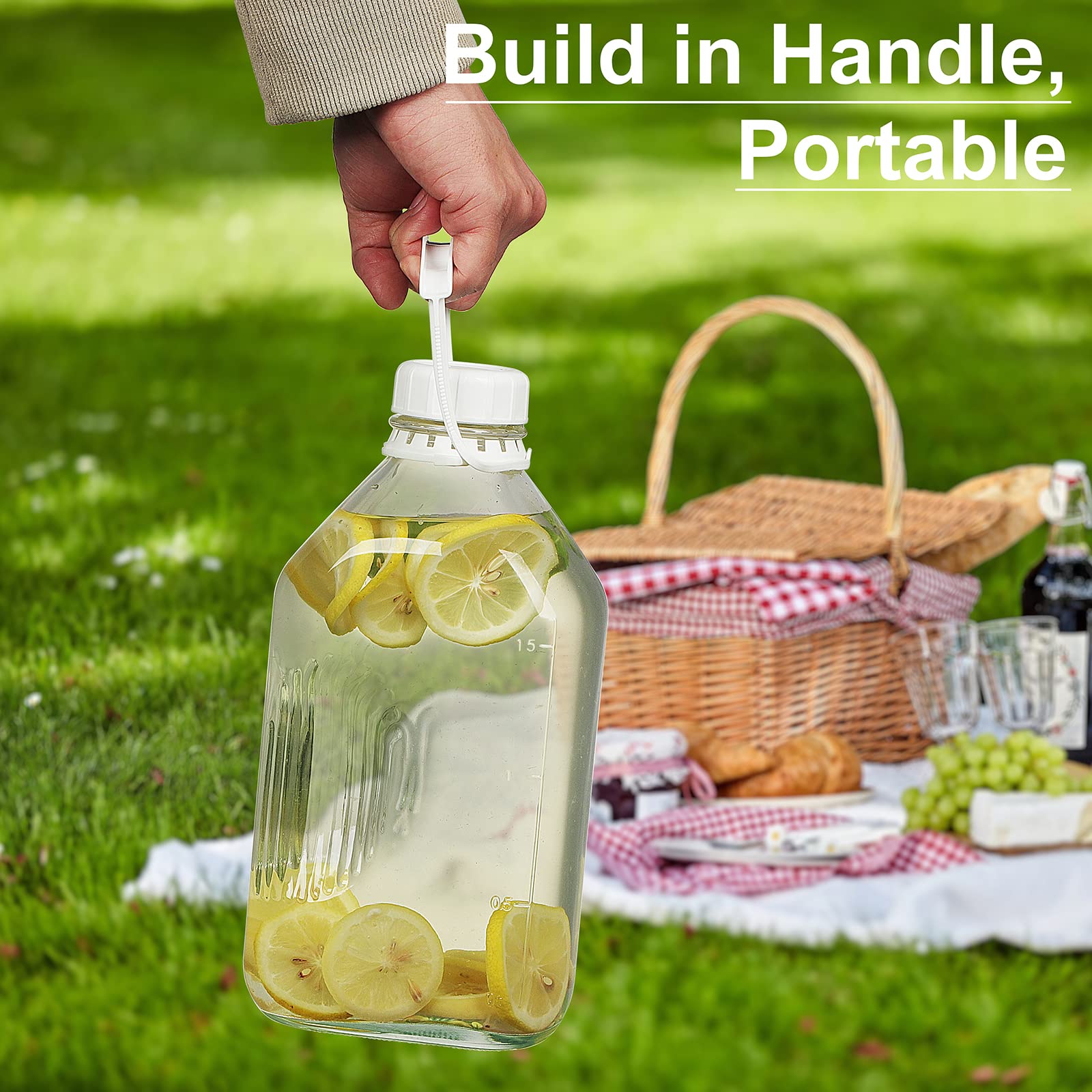 • Glass Water Jug and Reusable Strong Airtight Screw Lid: Glass milk jug with customized threaded lid and removable silicone sealing gasket, the lids are made of high-grade material which is sturdy and will not cause cracking, easy to open and close, no leak
