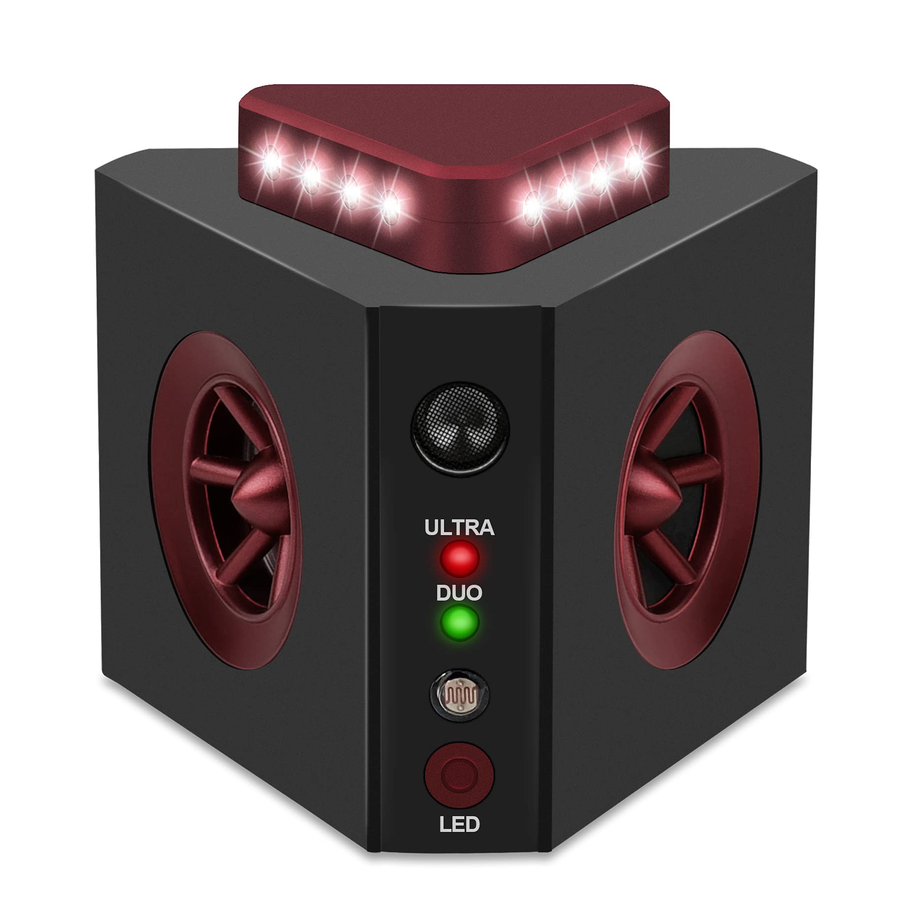 • Three Speakers with Maximum Repelling Power: Featuring three distinct speakers, this ultrasonic rodent repeller delivers a combination of high-frequency ultrasounds, impulse waves, and predator sounds, simulating natural enemies to intensify the deterrent effect against rodents.