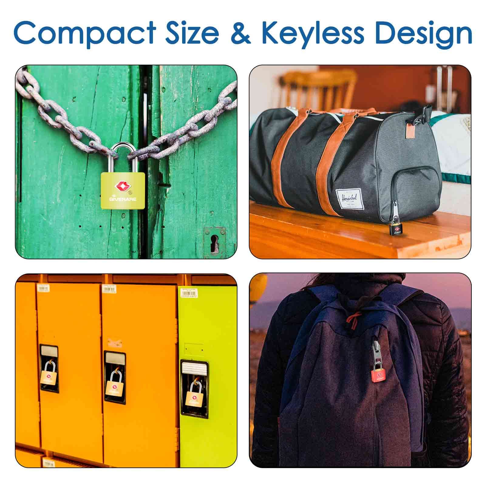 4 Pack TSA Approved Travel Luggage Locks with Keys, Solid Brass Copper Keyed Padlock, ABS Plastic Covered Small Locks for Suitcase, Backpack, Gym Locker, Jewelry Box-by GIVERARE