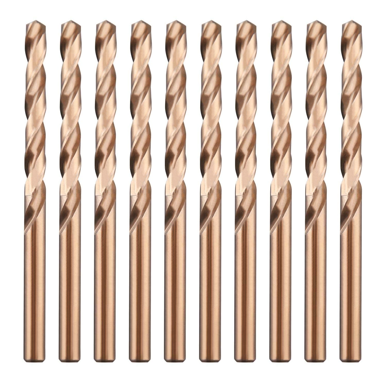 5/16" M35 Cobalt HSS Jobber Length Twist Drill Bit with Straight Shank,Heavy Duty, Pack of 10 PCS, Drilling for Cast Iron, Heat-Treated Steel, Stainless Steel and Other Hard Materials by LU&MN