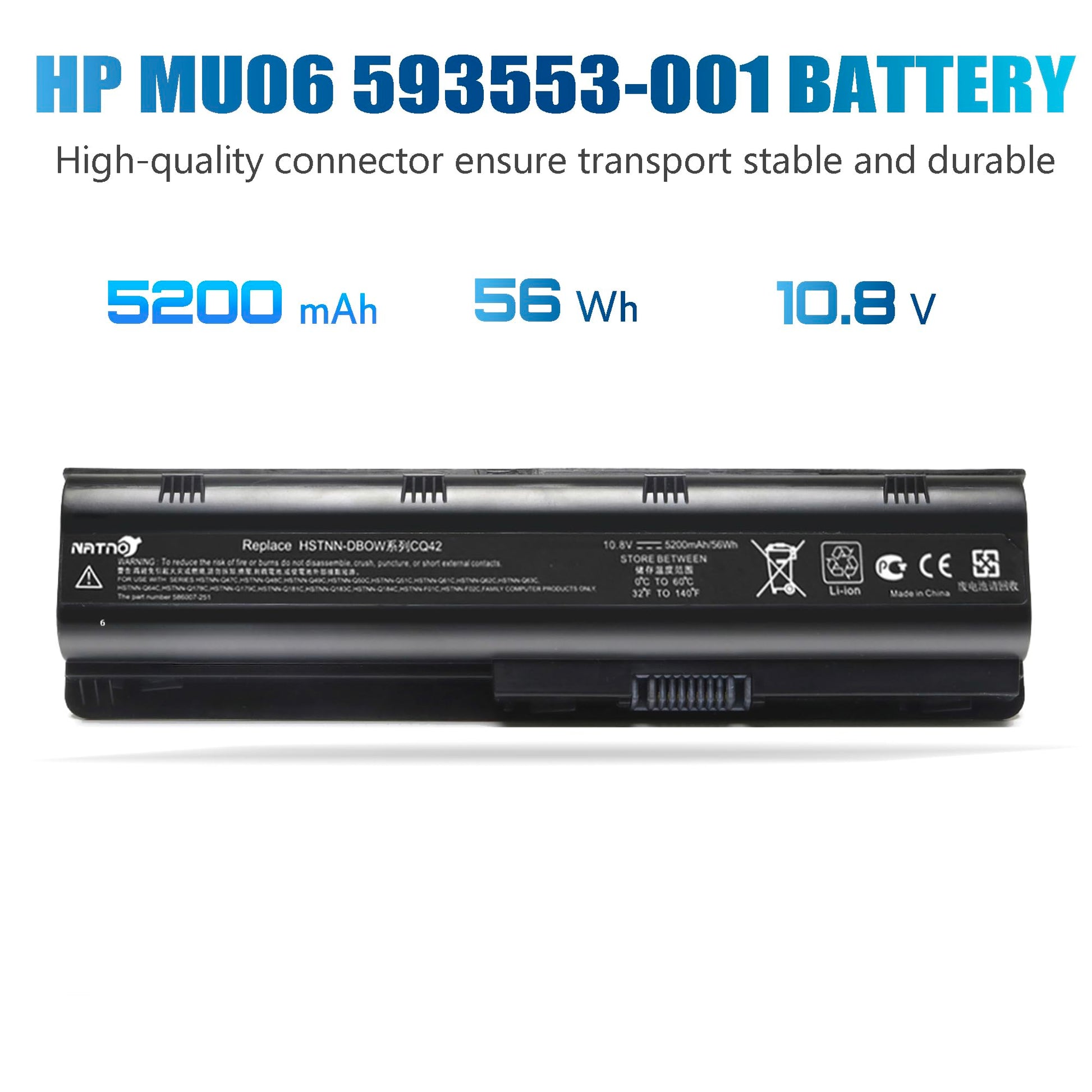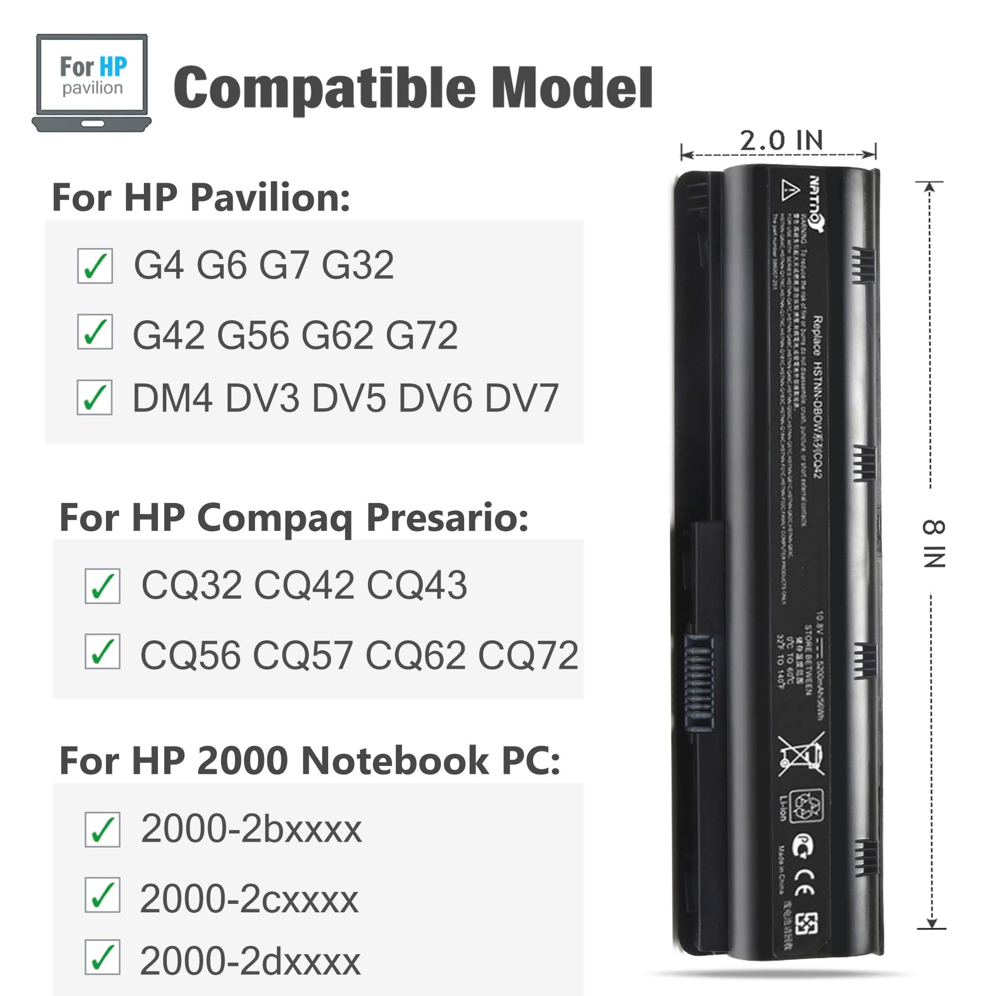![593553-001 593554-001 MU06 MU09 Extended Laptop battery for HP Pavilion G6 G7 G62 G72 G4 / 2000 Notebook PC / DV6 DV7 DM4 / Compaq Presario CQ32 CQ42 CQ43 CQ56 CQ57 CQ62 CQ72[10.8V 5200mAh 6Cell]](http://marketros.com/cdn/shop/files/714uufMTAFL.jpg?v=1761545503&width=1445)