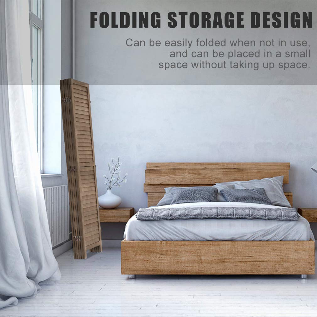 6 Panel Wood Room Divider 5.75 Ft Tall Privacy Wall Divider Folding Wood Screen 68.9" x 15.75" Each Panel for Home Office Bedroom Restaurant (Brown)