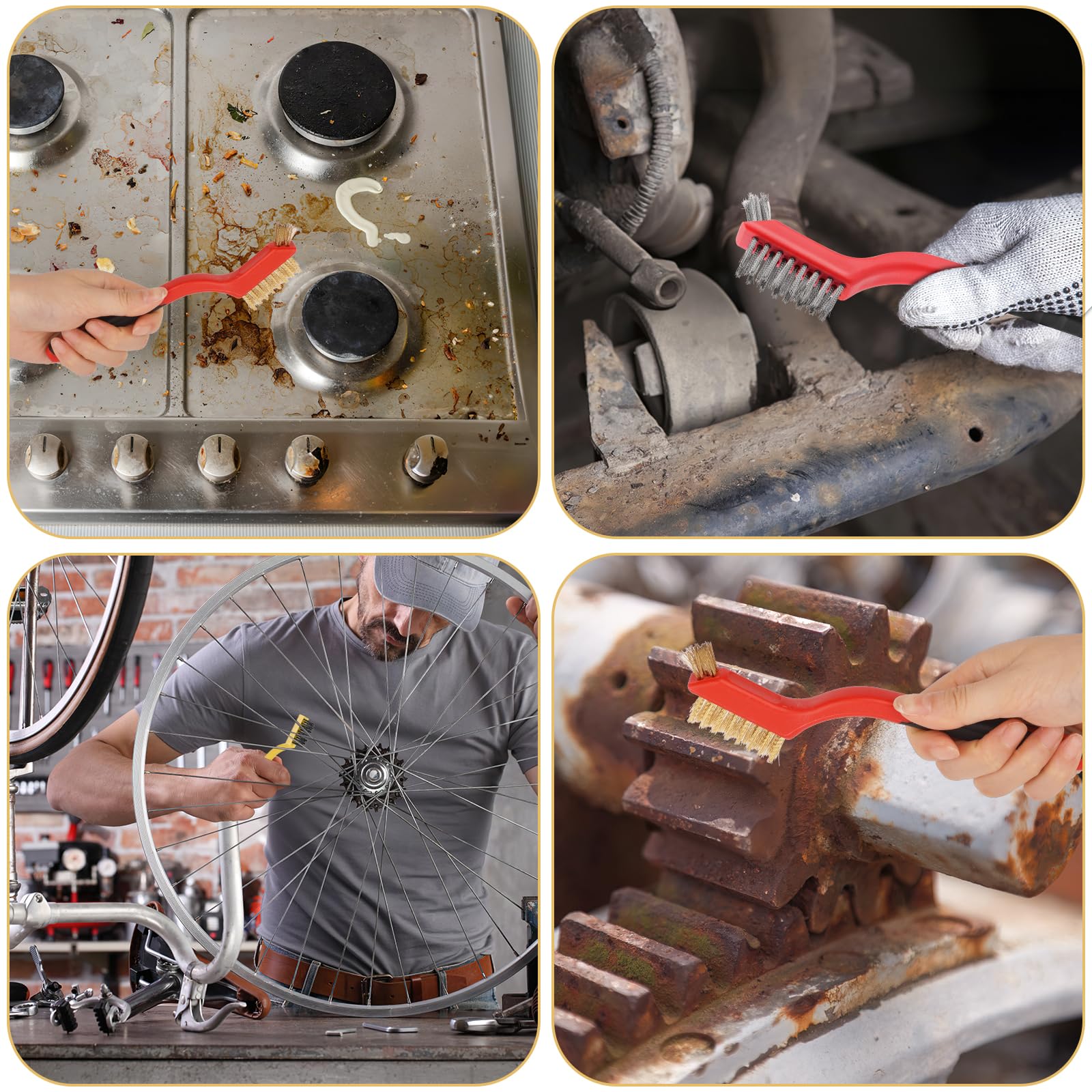 • Multiple Uses: Stainless steel wire brush for rust removal, brass brush for clean metal surfaces without scratches, and nylon brush for gentle cleaning; perfect for cleaning the rust grease grime