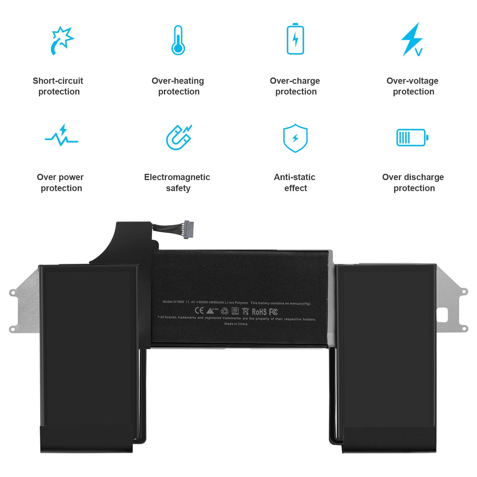 • ♣Power Specs: Battery Type: Li-polymer Voltage: 11.4V Capacity: 55Wh/4800mAh; The battery is durable and has overcurrent protection, anti-overcharge, anti-overdischarge and temperature control functions.Estimated number of recharges: about 500 times. (The number of charges and usage time will vary by model and usage). The remaining power can be displayed, and it can be charged directly with the host and the original charger.