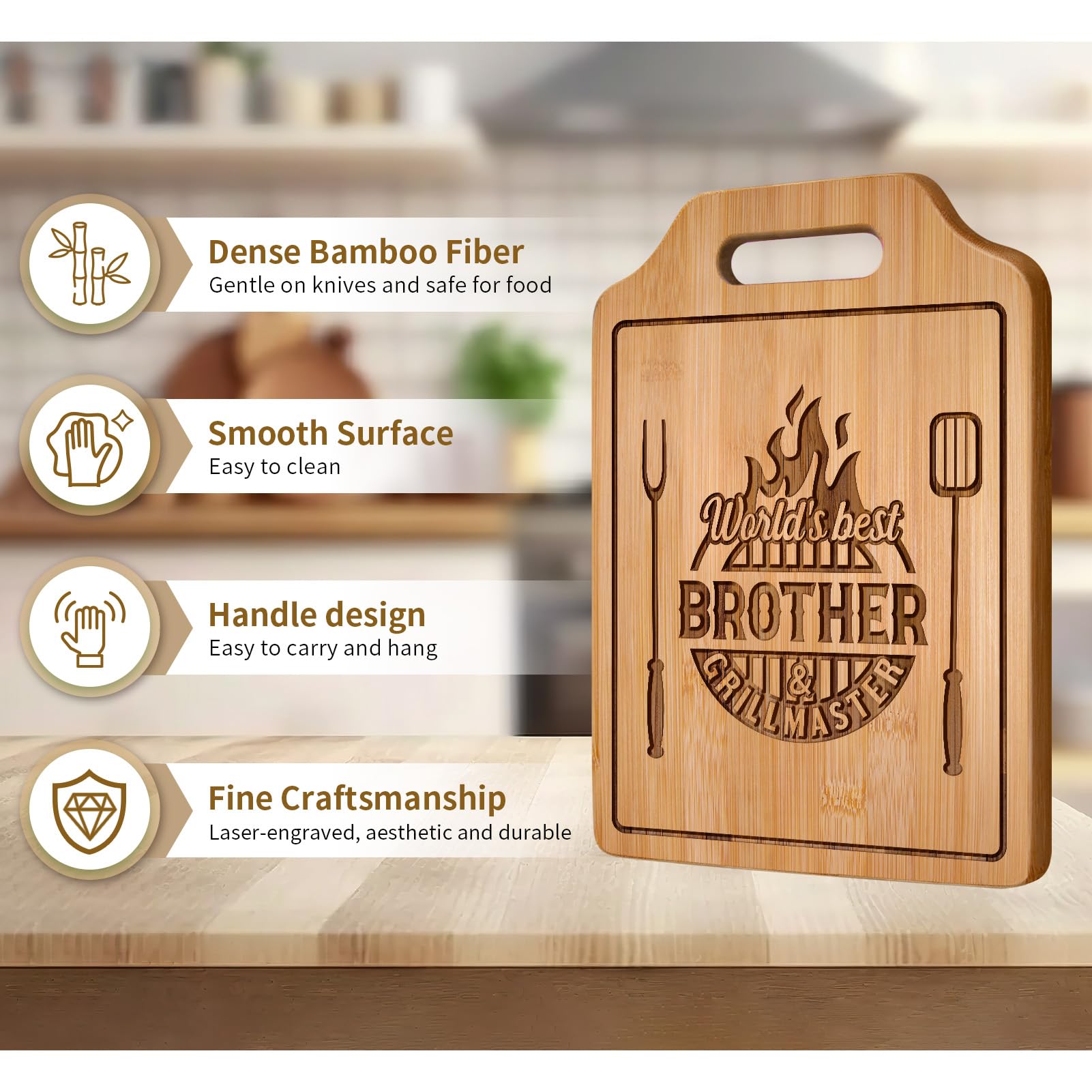 • Gifts for Brother Gifts: Looking for a unique brother gifts for brother adult? This brother-themed bamboo cutting board is a perfect choice. Engraved with 'World's Best BROTHER & GRILLMASTER' and a stylish kitchen fork design, it's a thoughtful and cool gifts for brother gifts