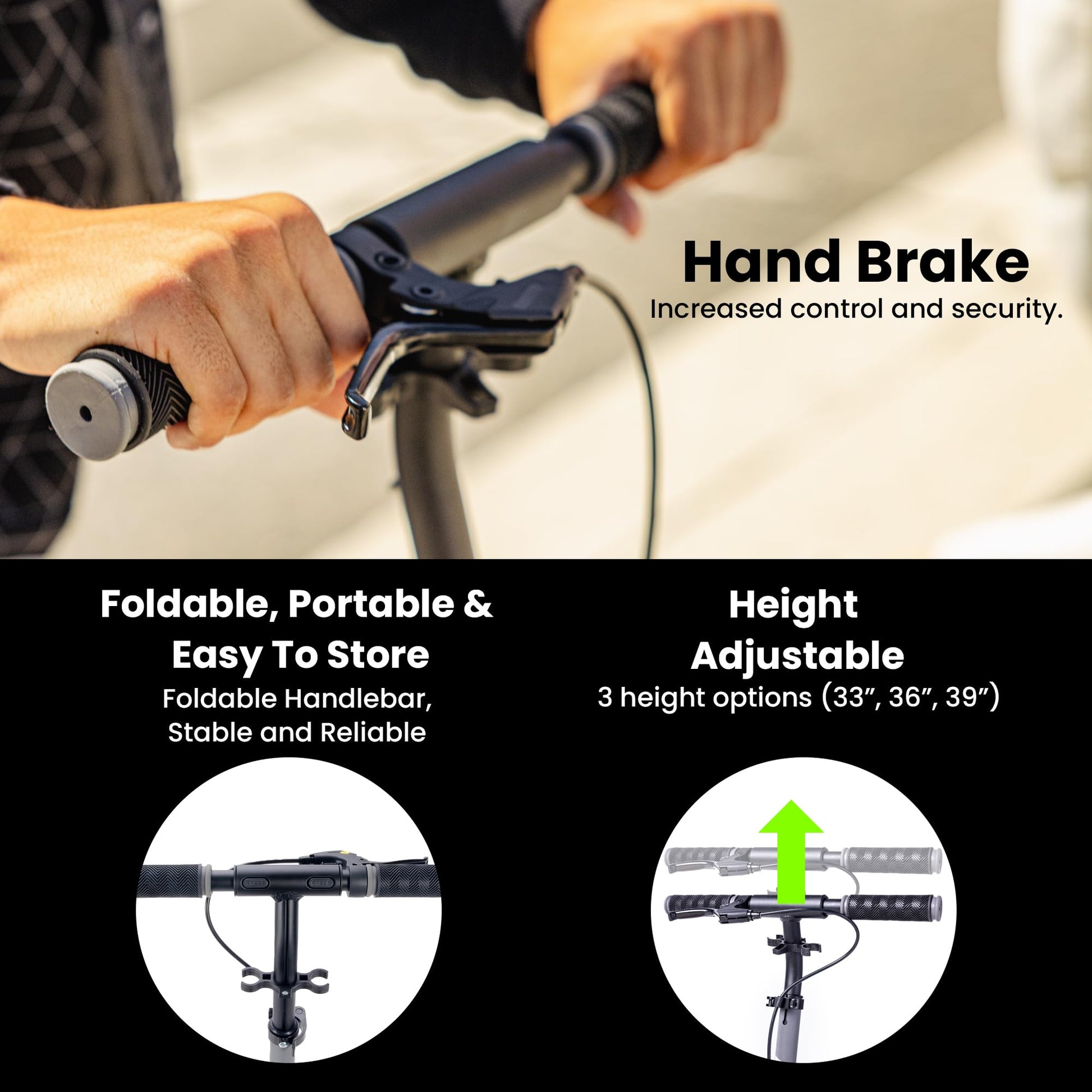 • DUAL BRAKES: In additional to the standard foot brake, this adult 2 wheels kick scooter features a hand-operated brake for enhanced control and safety
