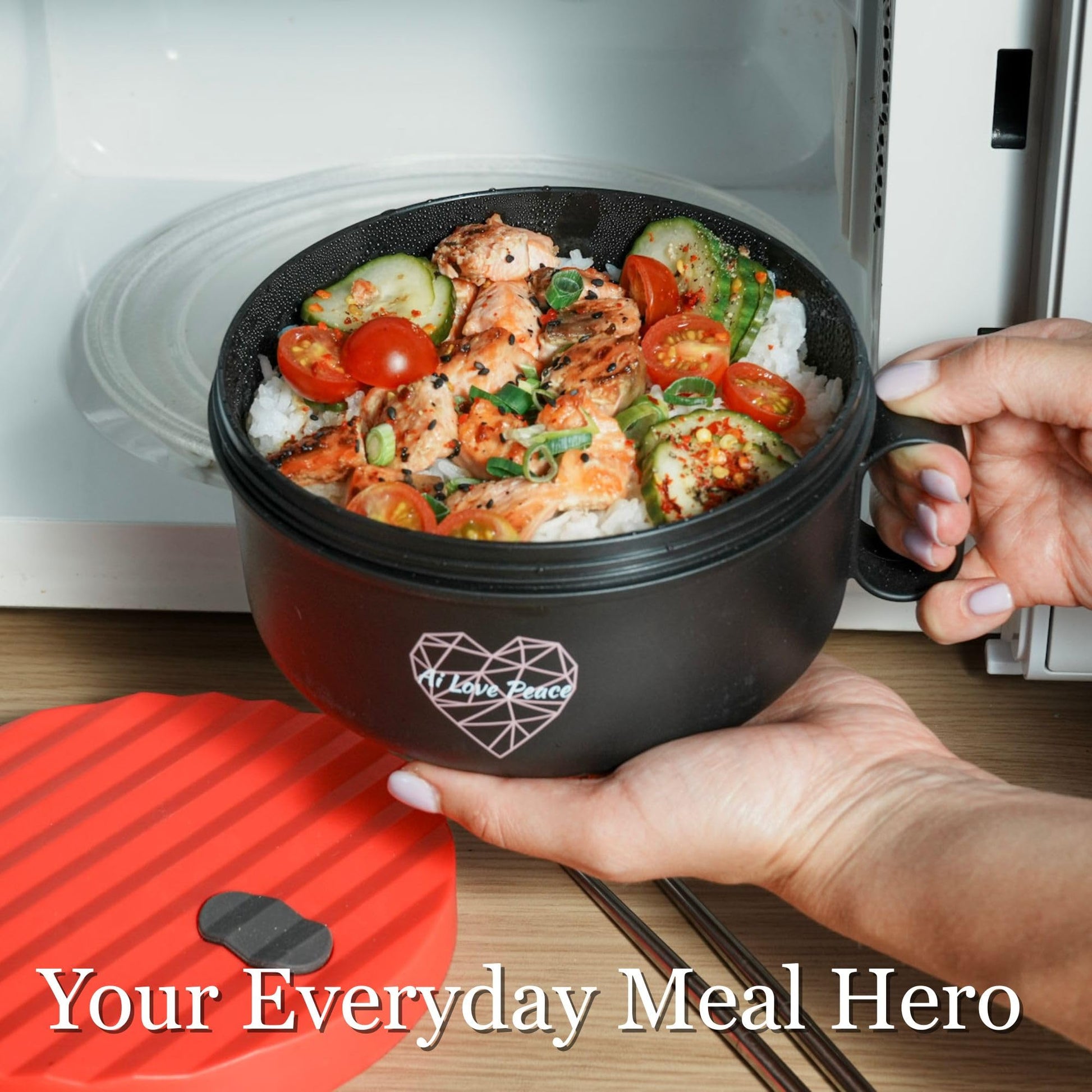 AI LOVE PEACE Ramen Bowl, 40 oz Microwaveable Noodle Cooker for Ramen, Pho, Soup, and Pasta, Dishwasher Safe and Portable, Ideal for Home, Office, Dorm, or Gift (Red)