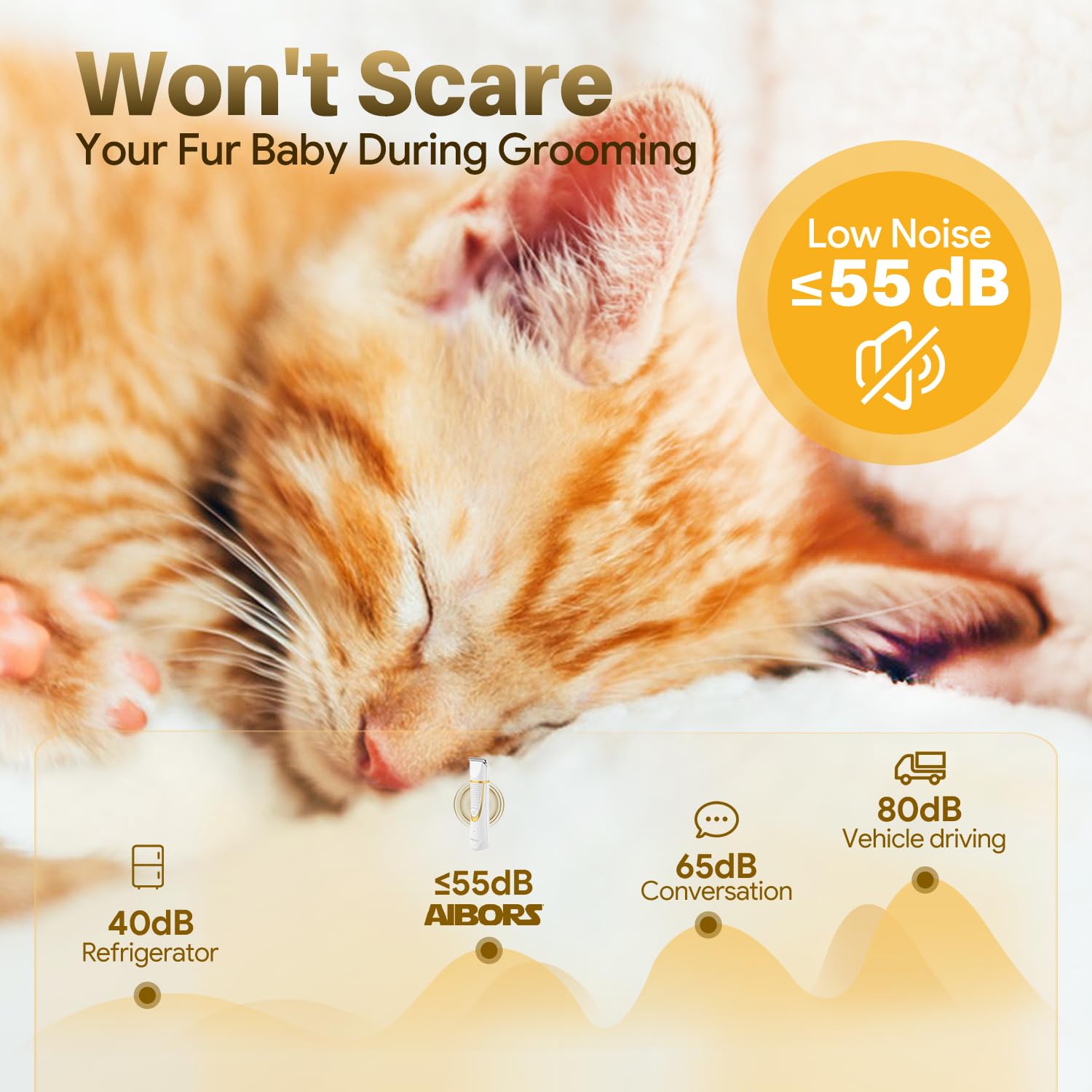 • Quiet Dog Hair Clippers: The pet grooming trimmer are equipped with advanced motors and silent technology, with fast speed and low vibration. The noise is about 55db when trimming, ensuring that your pet is comfortable throughout the grooming process and will not scare your furry baby. Their hair can be trimmed to the right length with steel scissors and combs, and then the electric trimmer can be used for body trimming to avoid pulling