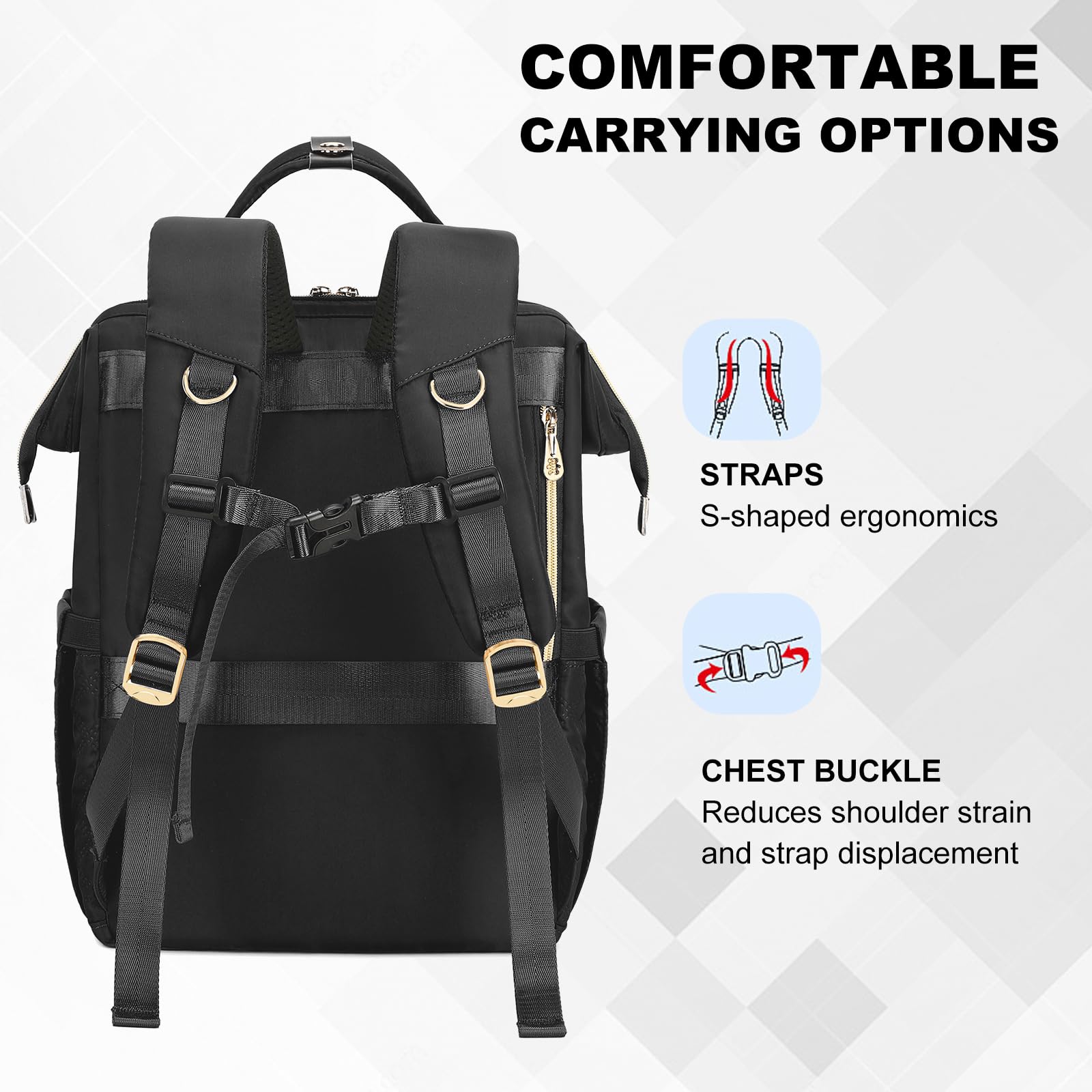 - 【Large Capacity & Multi-Pocket Design】Our laptop backpack features 1 main compartment and 3 zipper compartment pockets as well as 11 inner pockets and 2 side pockets, providing perfect protection for your 15.6-inch computer and place Your tablet, textbook, A4 folder, wallet, tissues, pens, clothes, sunglasses, bottles, etc. You can use this lunch backpack as a multifunctional women's backpack for teachers, college, nurse, work, travel, etc.