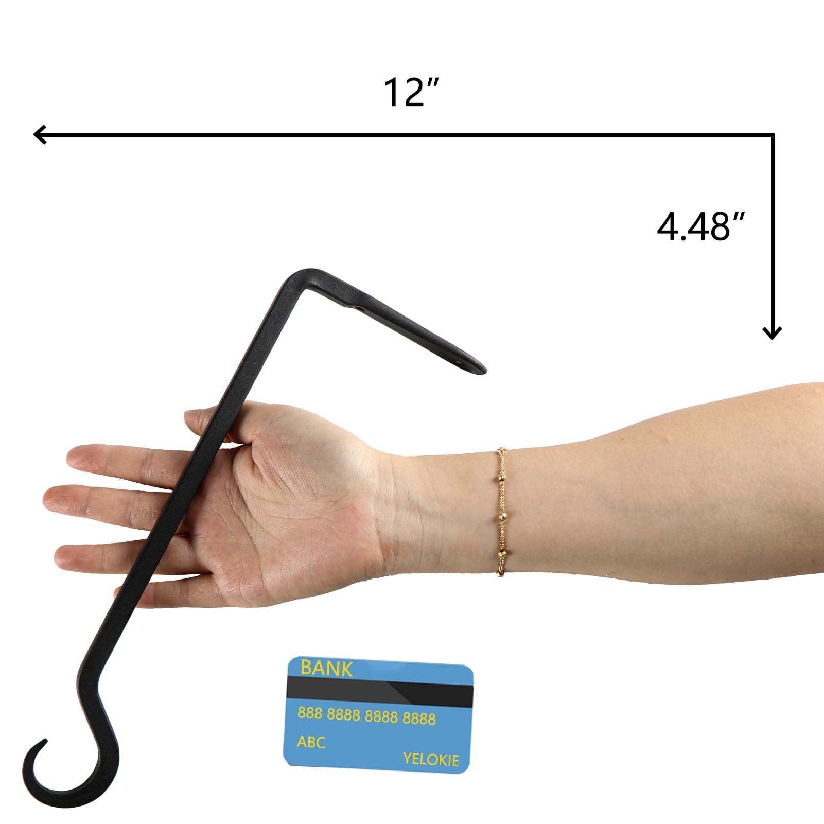 AILIN YELOKIE 2 Pack Premium Forged Wall Hook, Sturdy Hanging Plant Bracket, Elegant Hook for Bird Feeders, Planters, Lanterns, Wind Chimes Indoor Outdoor, Upgrade Black, 12 Inch
