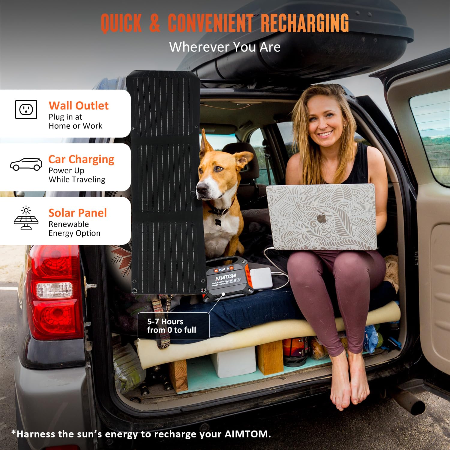 AIMTOM 155Wh Portable Power Station with 30W Solar Panel – 150W Peak/110V AC, 18W USB-C, 2x USB-A & 12V DC – Solar Generator for Camping, Home, RV, Travel & Emergencies