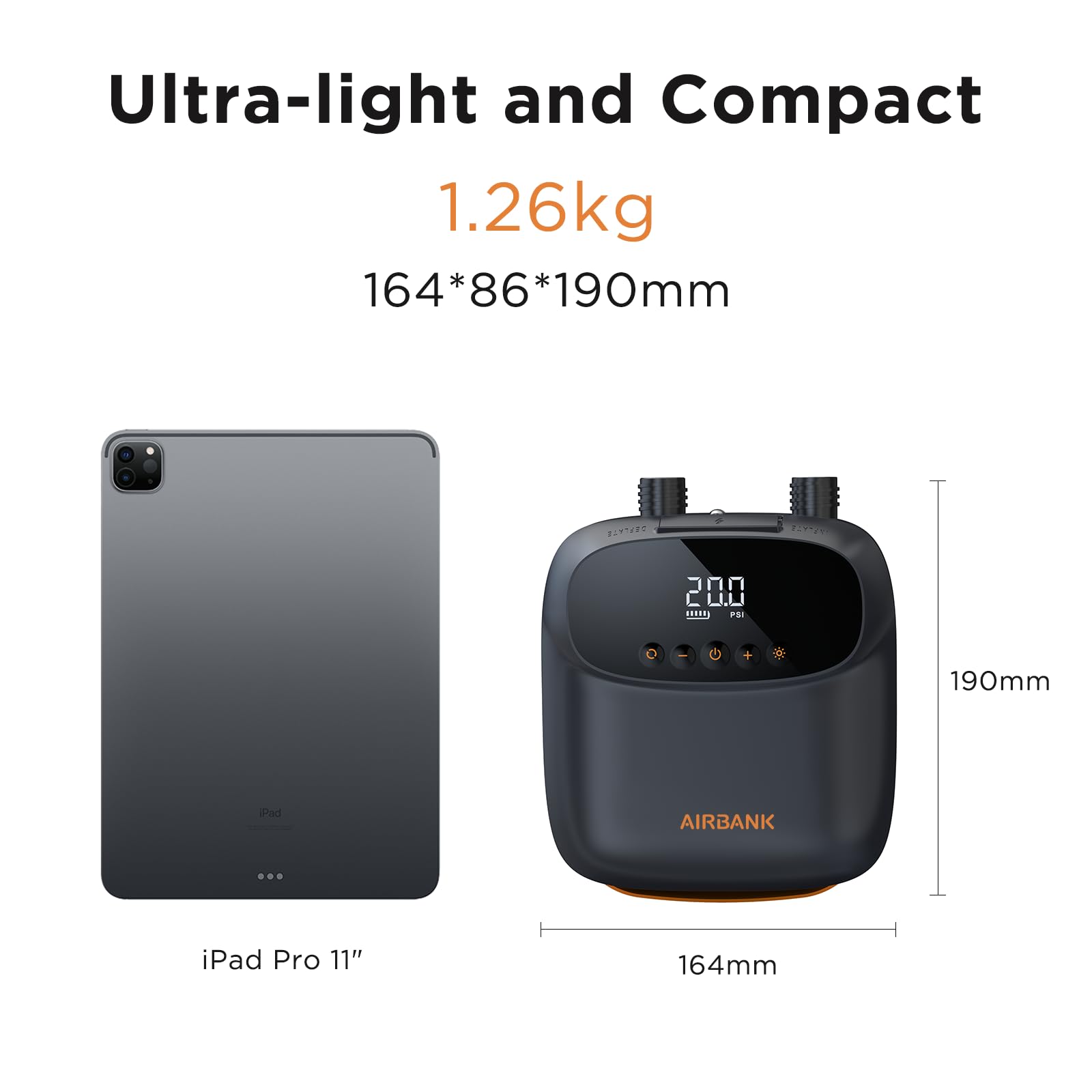 AIRBANK Paddle Board Pump Electric 20PSI The Puffer Pro, Portable SUP Pump, Dual-Stage Inflation & Auto-Off Air Pump for Stand up Paddle Boards, Kayak, Inflatables, Boats, Tent, Mattress, Kite Wings