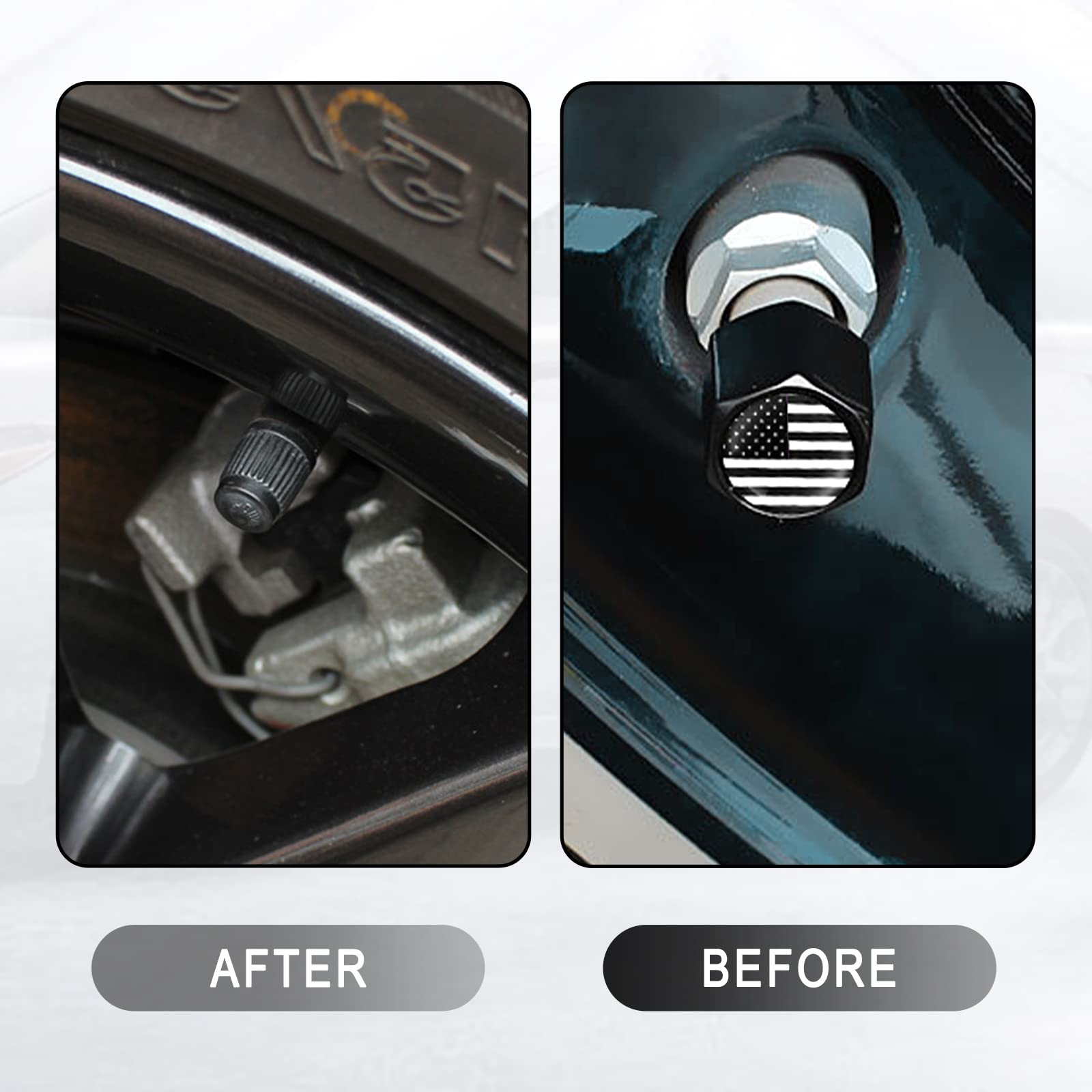 Ajxn 4 PCS B&W American Flag Car Wheel Tire Valve Stem Caps Airtight Dust Proof Covers Universal Tire Air Valve Caps for Cars, Trucks, Bicycles (Black)