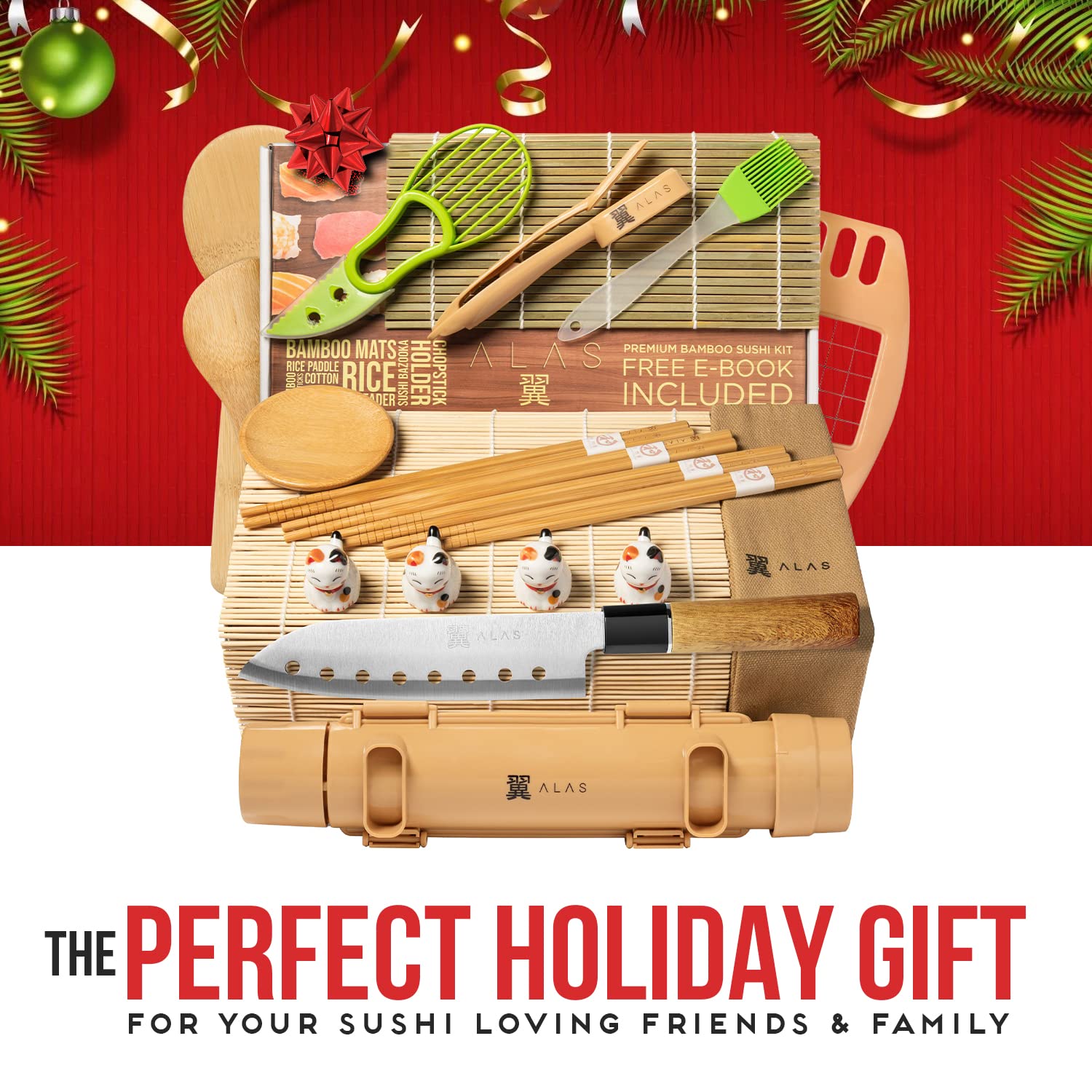 • EASY SUSHI MAKING KIT: Lessen your obstacles and lack of accessories in your kitchen with our Alas sushi kit. It has everything you'll need to make sushi rolls like a pro. With our complete set of sushi-making accessories, making your own California sushi, maki, and nigiri rolls can be easier than ever before. Now you can prepare delicious sushi in the comfort of your home with our sushi maker kit.