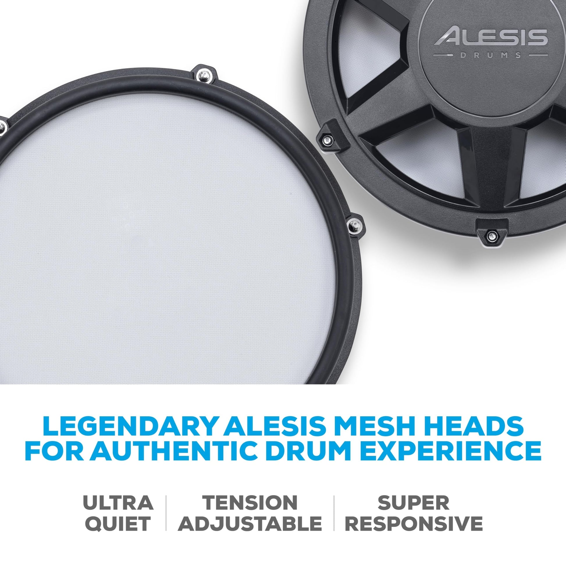 • Genuine Performance Feel - Now bigger 10” dual-zone mesh snare, (3) 8” mesh toms, kick drum tower with pedal and (3) 10' cymbals: ride, hi-hat with foot controller, crash with choke, on a solid foldable rack