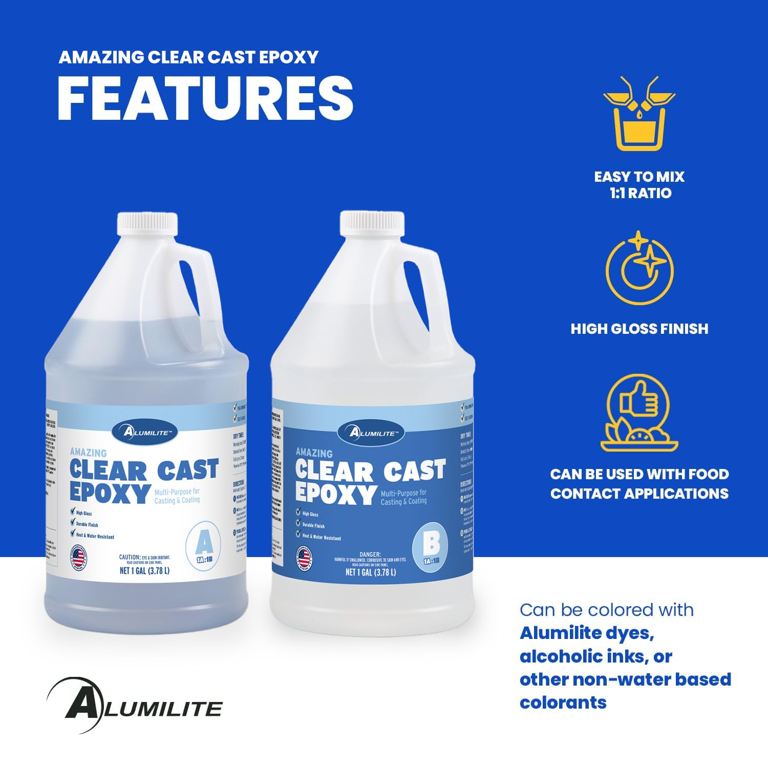 Alumilite Amazing Clear Cast Epoxy Resin Kit (2 Gal) Food Safe, Crystal Clear, High-Gloss Finish – Perfect for Countertops, Encapsulation, Coatings, Castings, Jewelry, Art, and Other DIY Projects