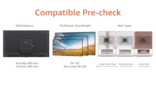 • Designed for TVs up to 80 lbs (36.3 KG) and display sized 26' - 55' (66 CM - 140 CM).