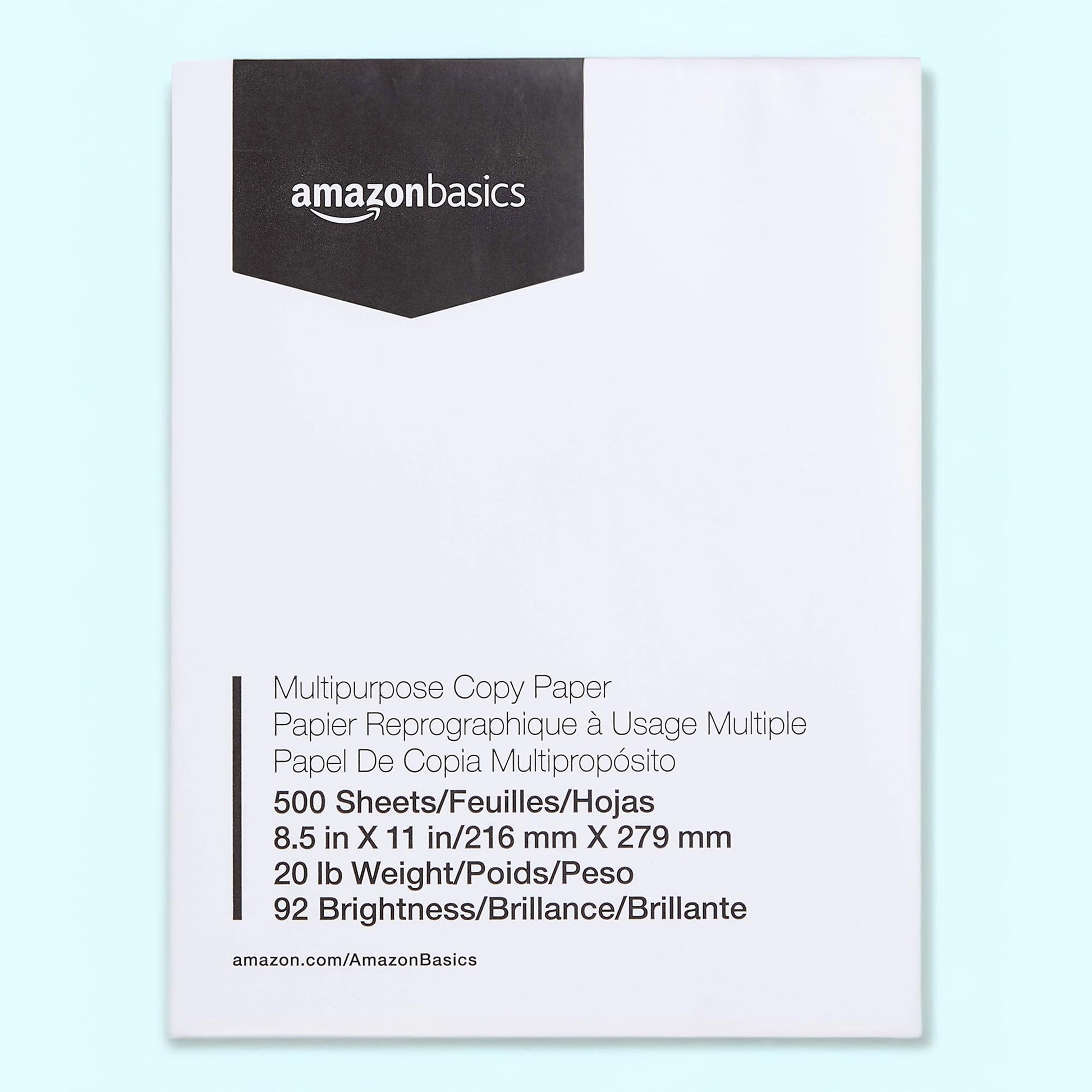 Amazon Basics Multipurpose Copy Printer Paper, 8.5 x 11 Inches, 20 lb, 1 Ream, (500 Sheets), 92 Bright, White