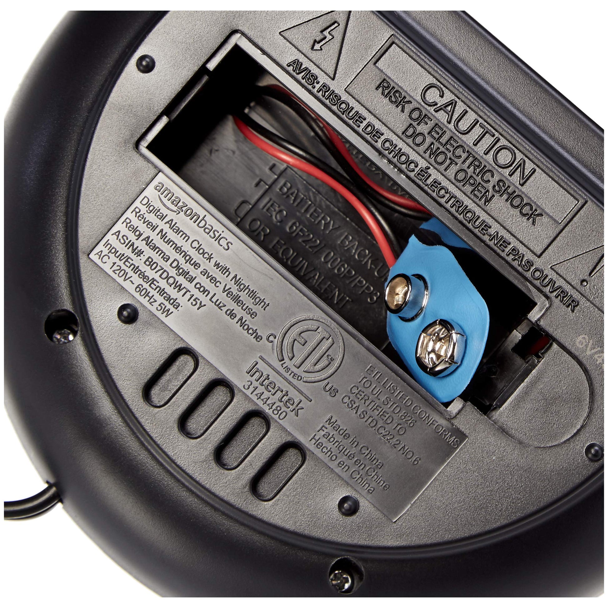 Amazon Basics Small Digital Alarm Clock with Nightlight and Battery Backup, LED Display