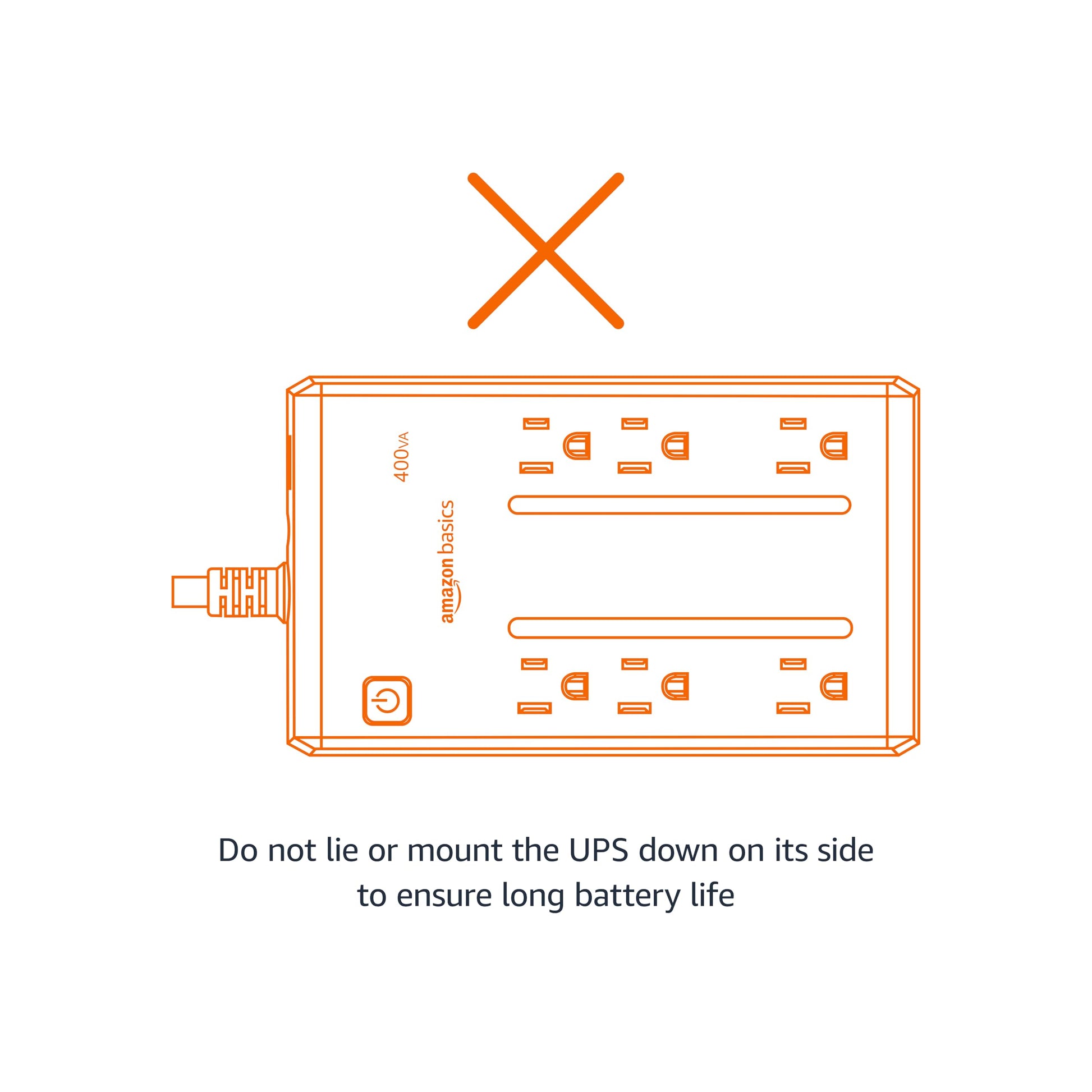 Amazon Basics UPS Battery Backup & Surge Protector 400VA/255W, 6 Outlets, Standby Uninterruptible Power Supply, for Power Outage Protection, Compact, Black