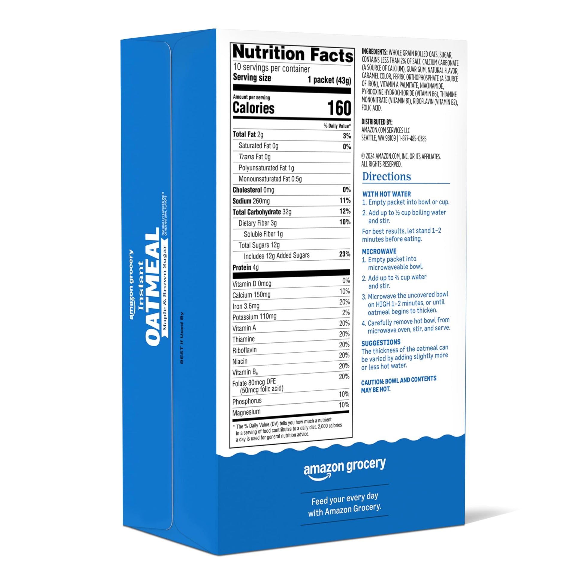 Amazon Grocery, Maple & Brown Sugar Instant Oatmeal, 15.1 Oz, 10 Ct (Previously Happy Belly, Packaging May Vary)
