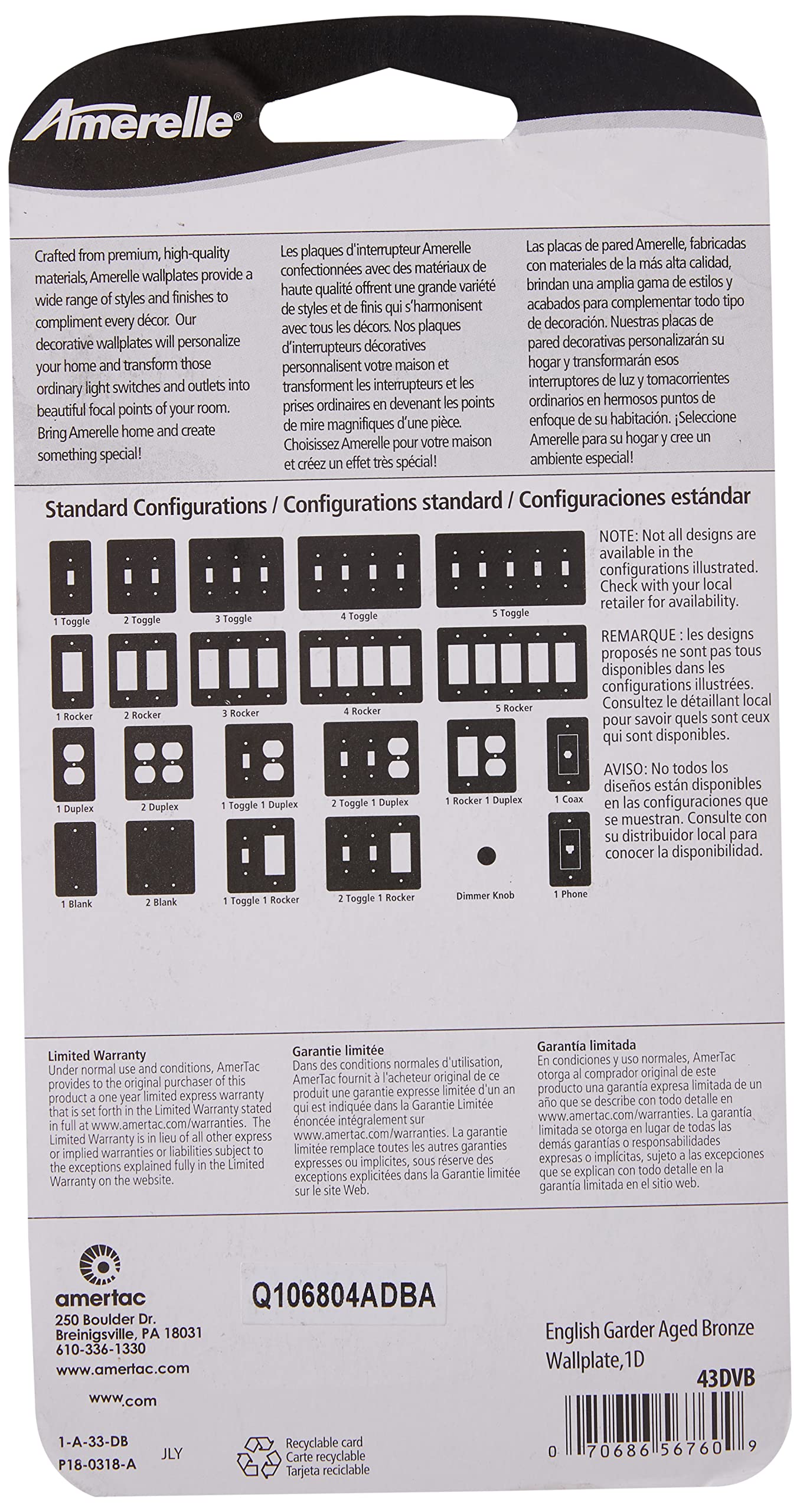 • SUPERIOR QUALITY: Amerelle wallplates are made with you and your home in mind. It is the finishing touches that make your home special. We provide top-notch products that are sure to last, so you and your family can focus on enjoying your home.