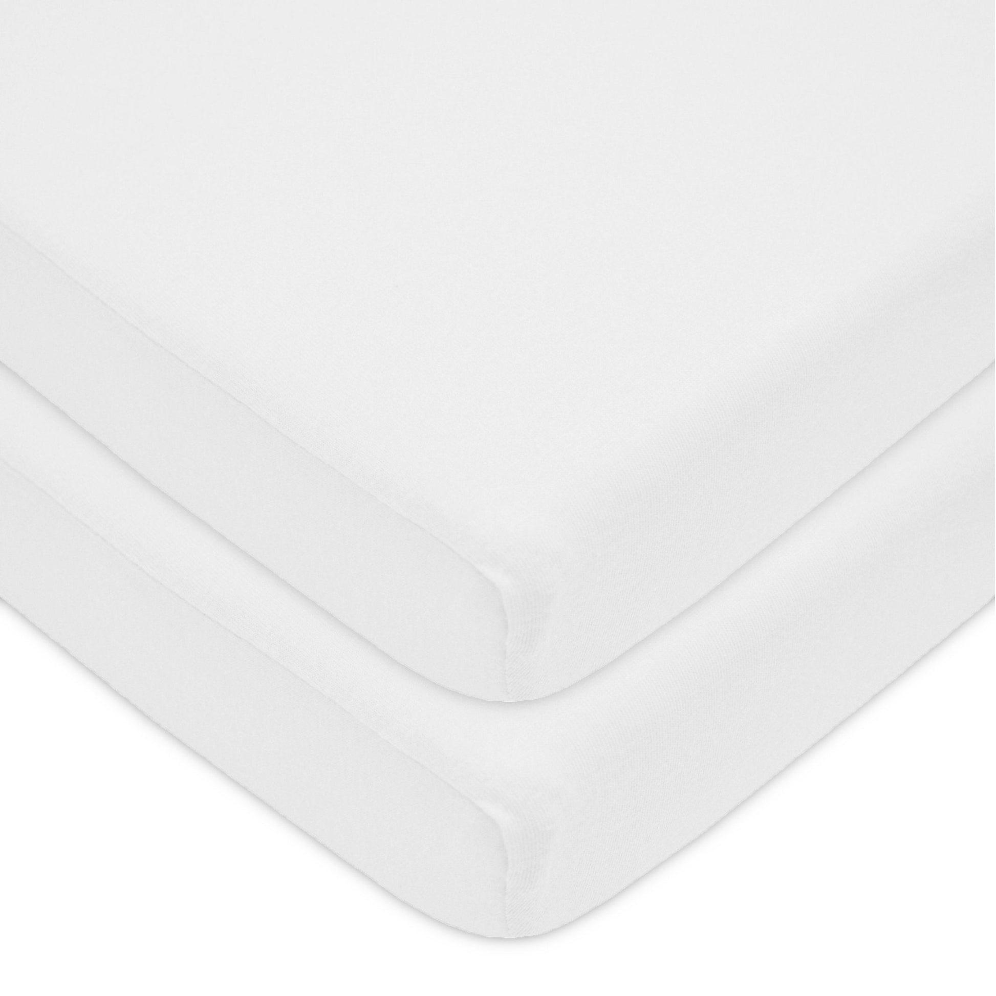 American Baby Company 2 Pack 100% Natural Cotton Fitted Pack and Play Sheets 39" x 27" - Soft & Breathable Pack N Play Sheets for Playard & Mini Crib Mattress, White, for Boys & Girls