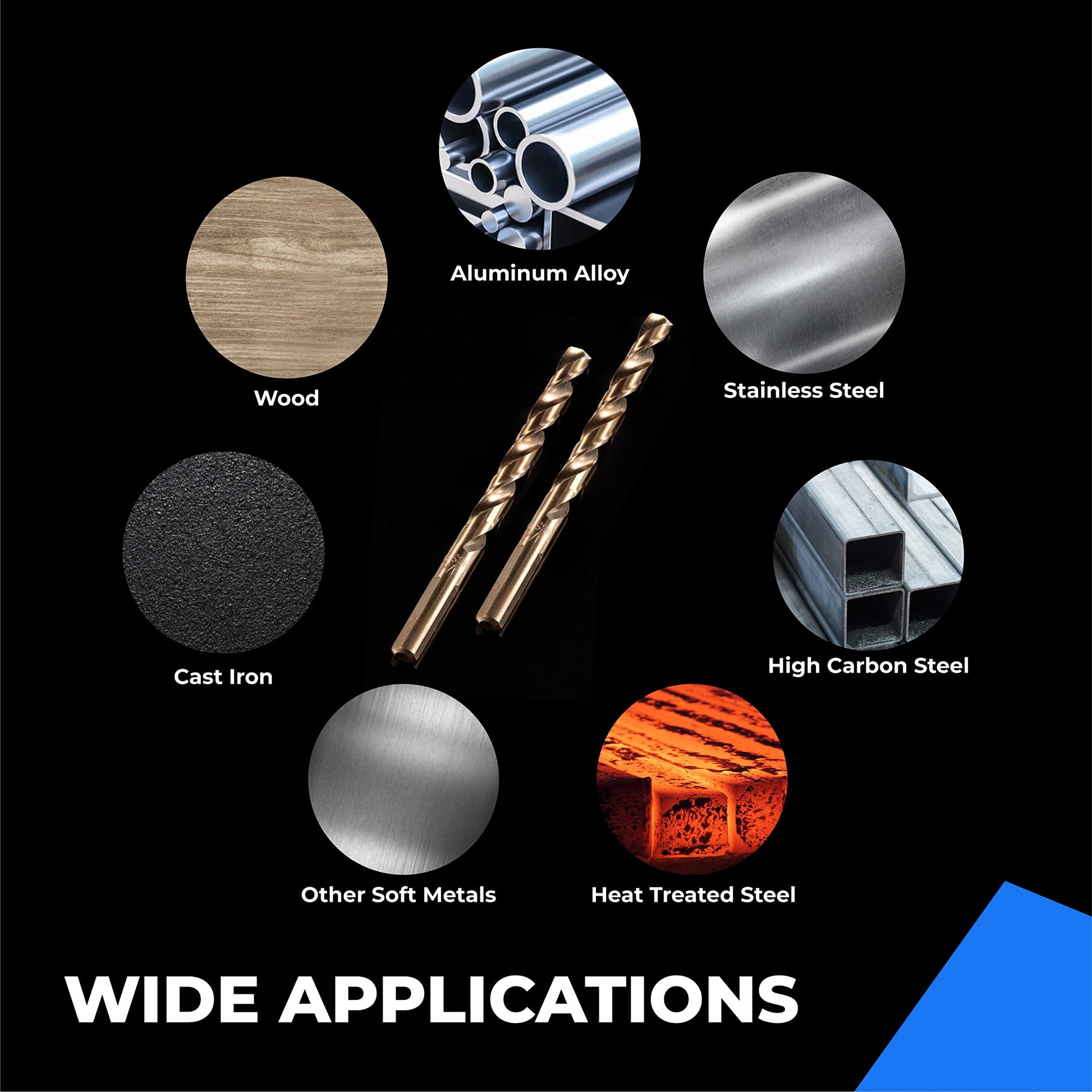 • 【M35 Cobalt High Speed Steel】Industry grade M35 high speed steel drill bit set, much harder than HSS used in other similar drill bits set. These drill bits contain 5% Cobalt, which increases wear-resistance and durability.