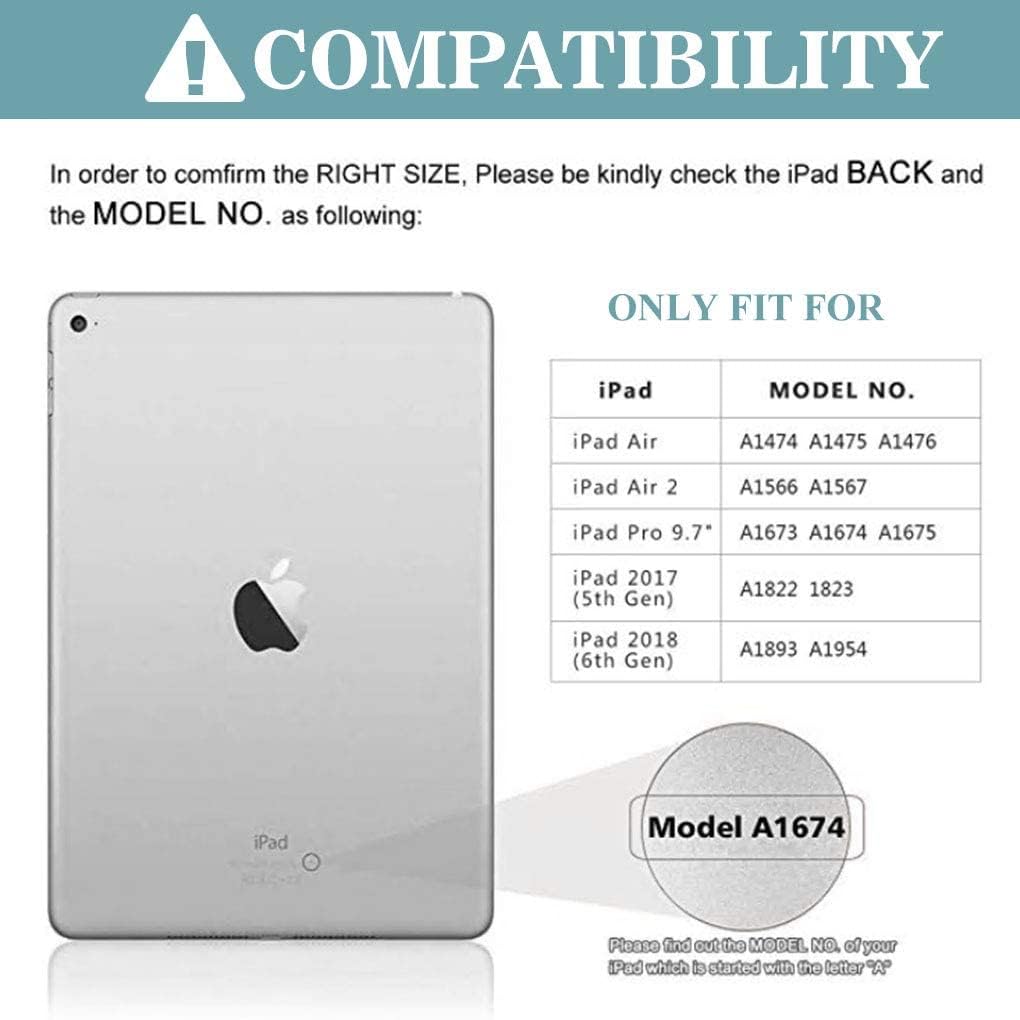 • 【Universal Compatibility】iPad pro 9.7 case with keyboard is compatible with 2018 iPad 6th Gen(A1893/A1954) 2017 iPad 5th Gen(A1822/A1823) iPad Pro 9.7 (A1673/A1674/A1675) iPad Air 2 (A1566/A1567) & iPad Air 1(A1474/A1475/A1476). Please review the back of your iPad to confirm the model number before you order. (The package doesn't contain iPad and iPad pencil)