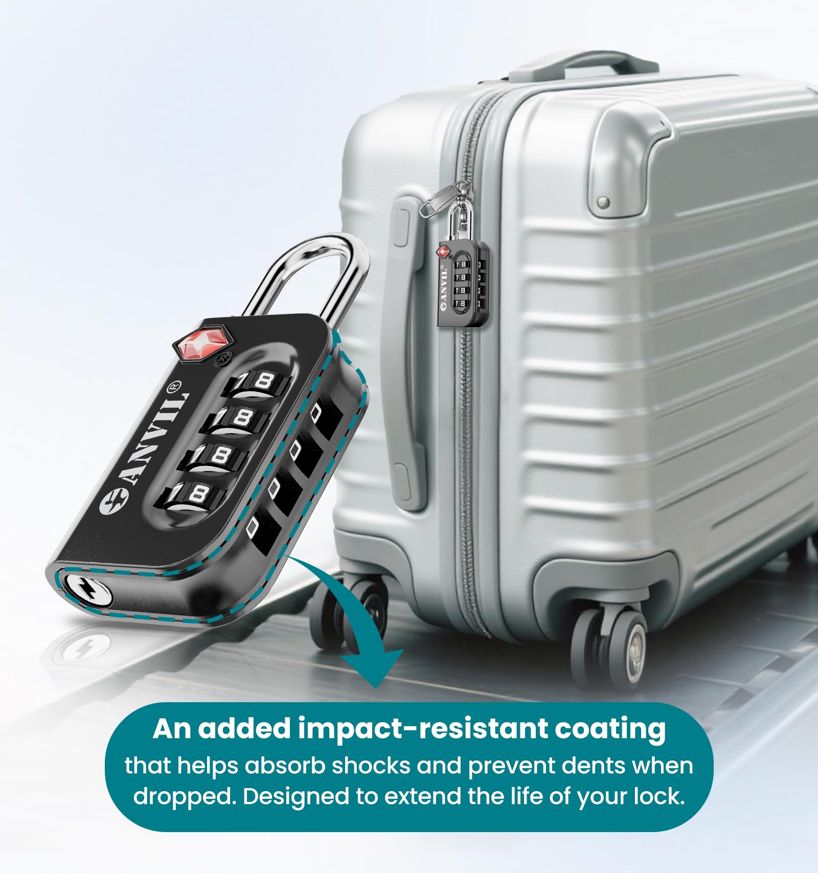 ANVIL TSA Approved Luggage Lock - 4 Digit Combination, 10,000 Combinations, Easy-Read Password Window, Travel Lock for Suitcases, Backpacks, Gym & Student Lockers, Baggage(Yellow 2 Pack)