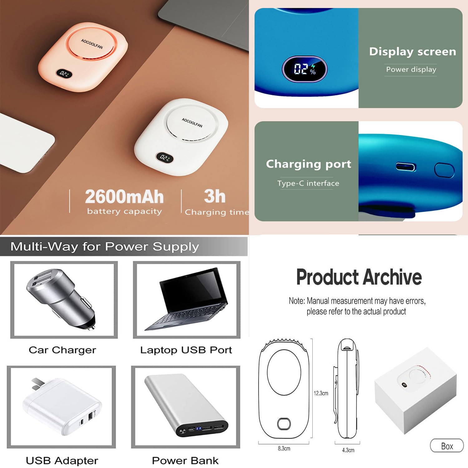 • Portable Neck Fan & Handheld Fans: Not only a handheld fan, but also a portable neck fan, with removable lanyard, can be hanging your neck convenient. There is a built-in stand on the back, after open the stand, it working as a small desk fan