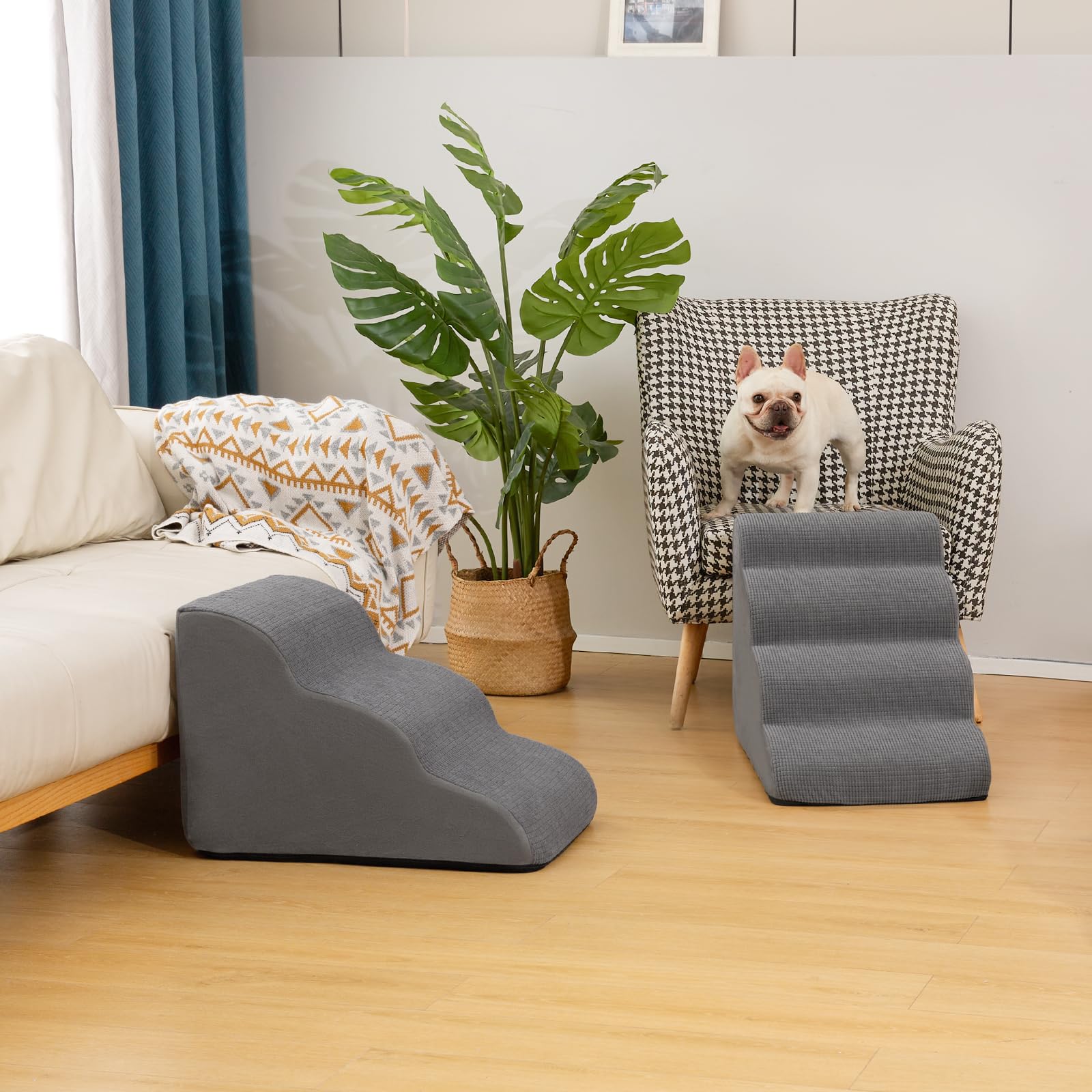 Aodisman 3-Step Dog Ramp and Stairs for Sofa and Chair - Non-Slip Sturdy Pet Steps for Small Dogs and Cats,15.7" H,Grey