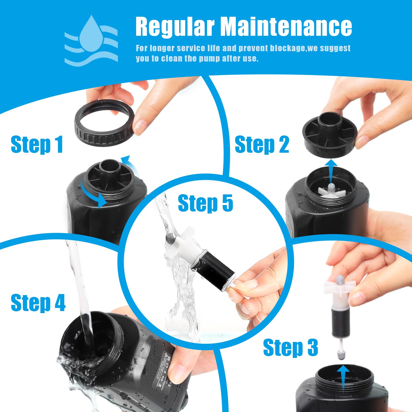 • EASY TO DISASSEMBLE & CLEAN: AQQA aquarium gravel cleaner is designed for easy maintenance and cleaning. It can be easily disassembled without any tools for cleaning and maintenance. We recommend cleaning and maintenance of the water pump after use to ensure that it stays in good condition and runs efficiently for a long time.