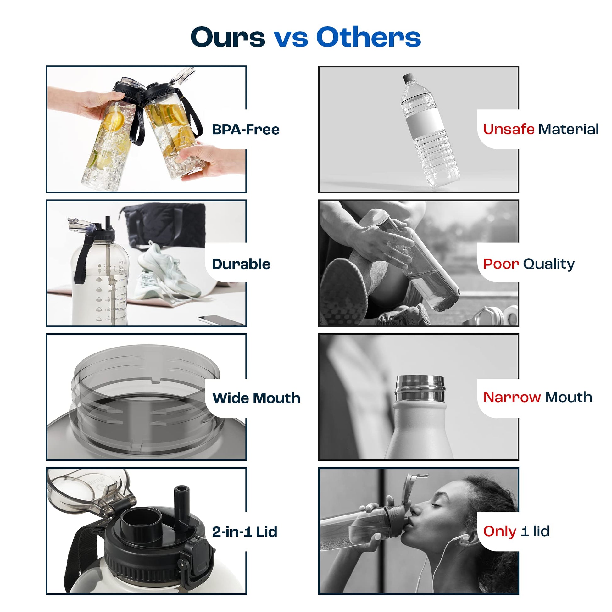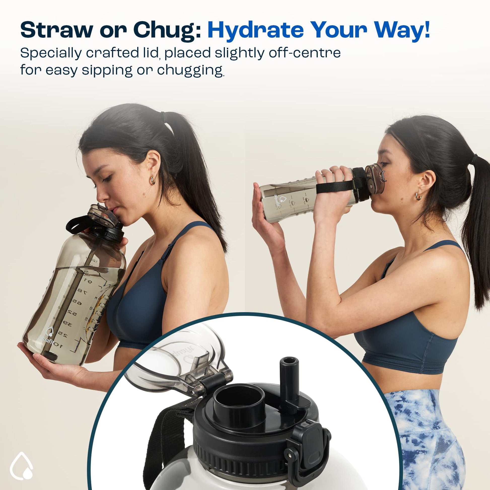 • Dual Function Lid: The 2-in-1 lid allows you to chug or sip without changing the lid.