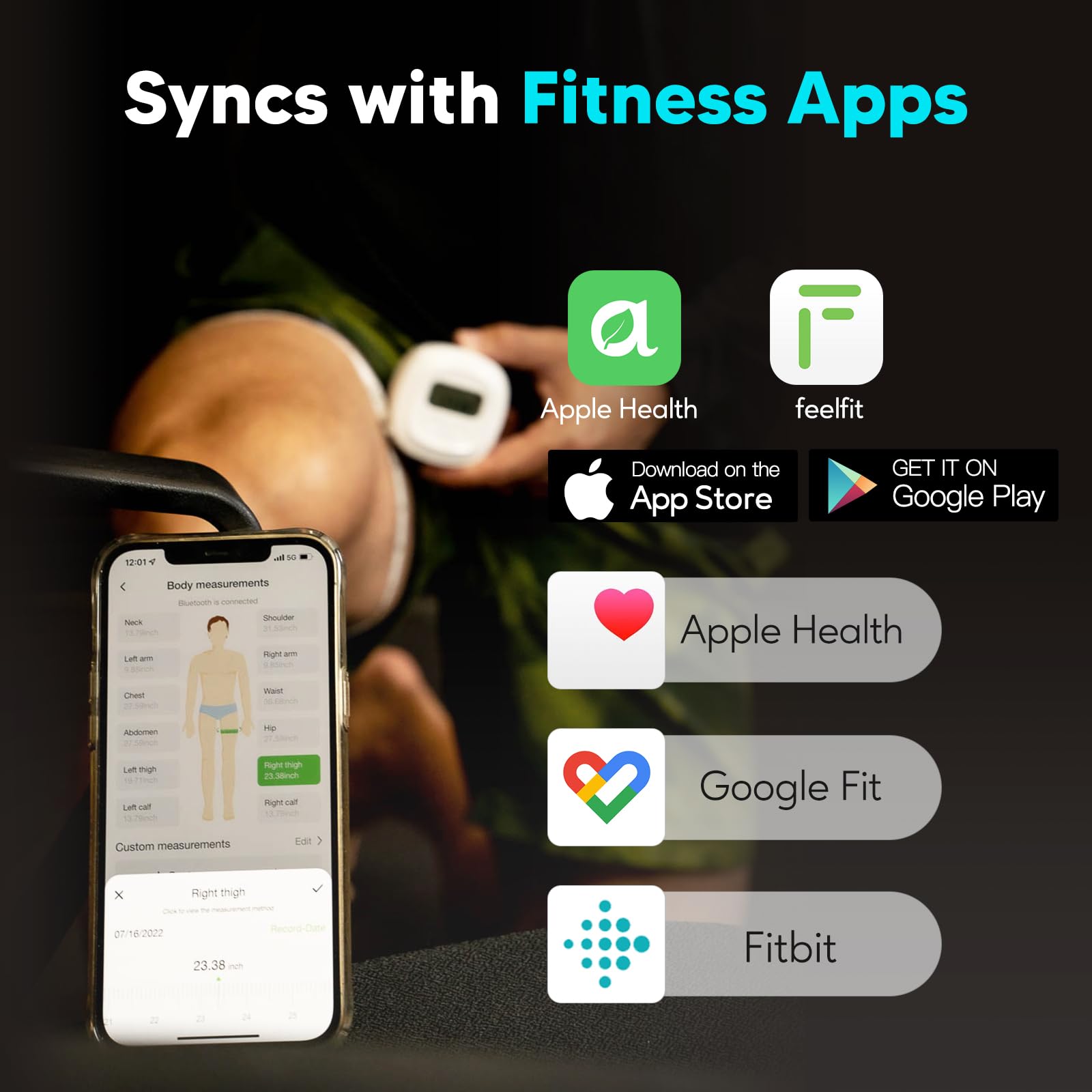 • Smart Body Measuring Tape & arboleaf App : Syncing with arboleaf, feelfit app, this smart tape measure tracks 12 key body areas and 6 customized parts, including biceps, calves, hips, thighs, waist, shoulders, bust, neck, and abdomen. Stay motivated with clear graphs. Whether you're on a weight loss journey, focusing on muscle gain, or improving your fitness, the smart body measuring tape makes tracking your body transformation easy.