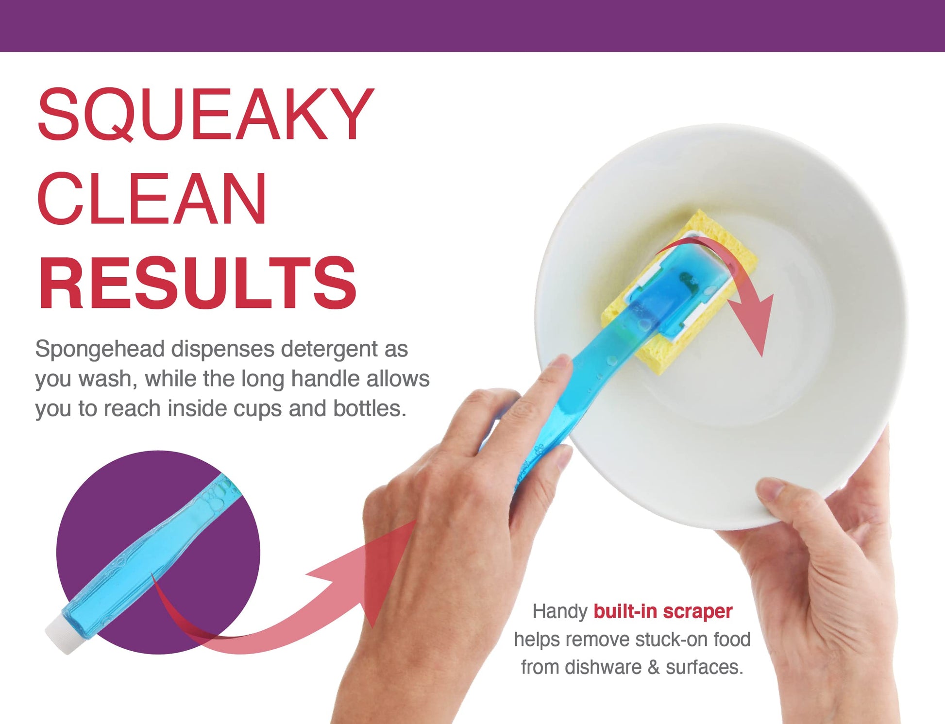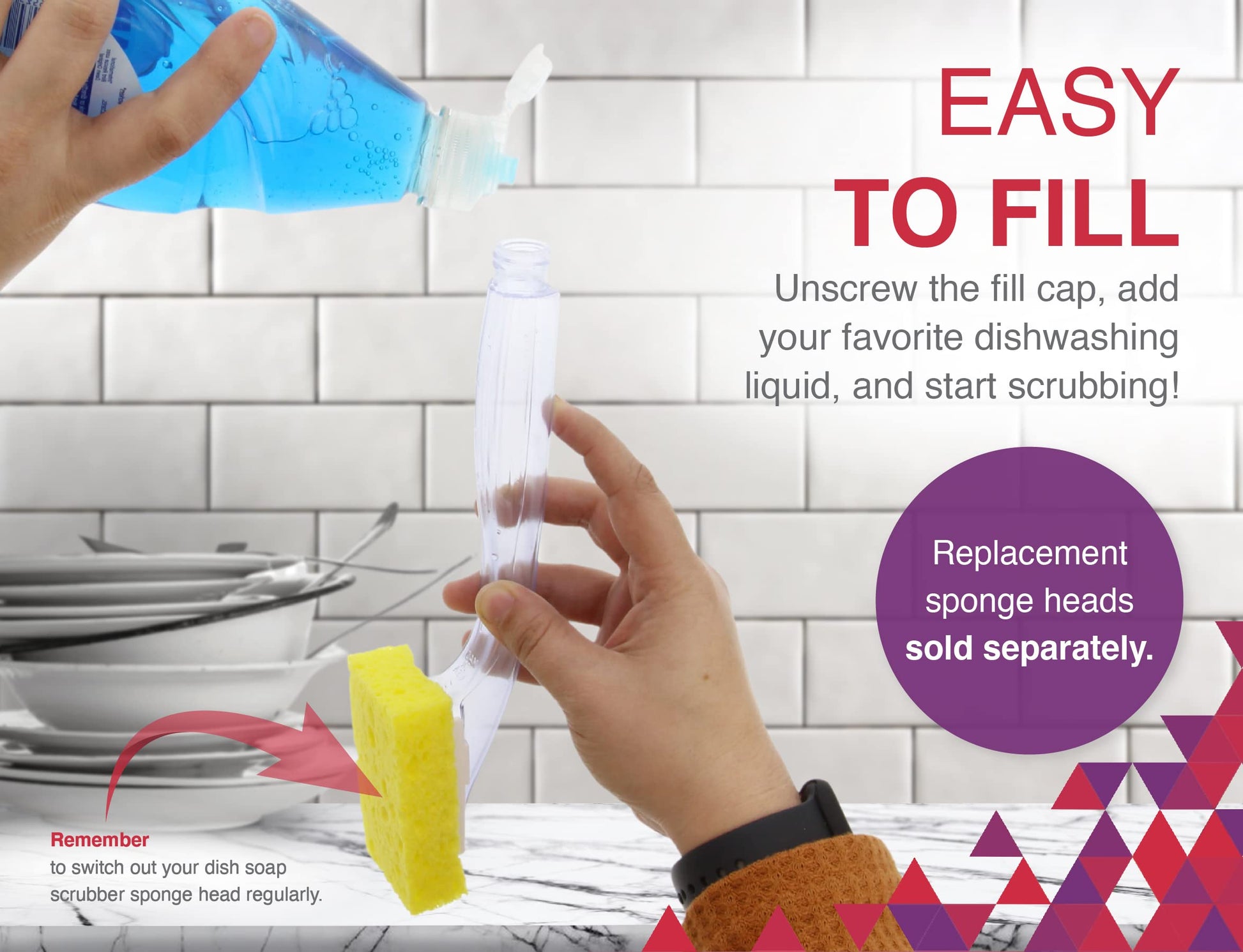 • Easy to Fill - Unscrew the fill cap, add your favorite dishwashing liquid, and start scrubbing! Remember to switch out your dish soap scrubber sponge head regularly. Additional replacement sponges sold separately.