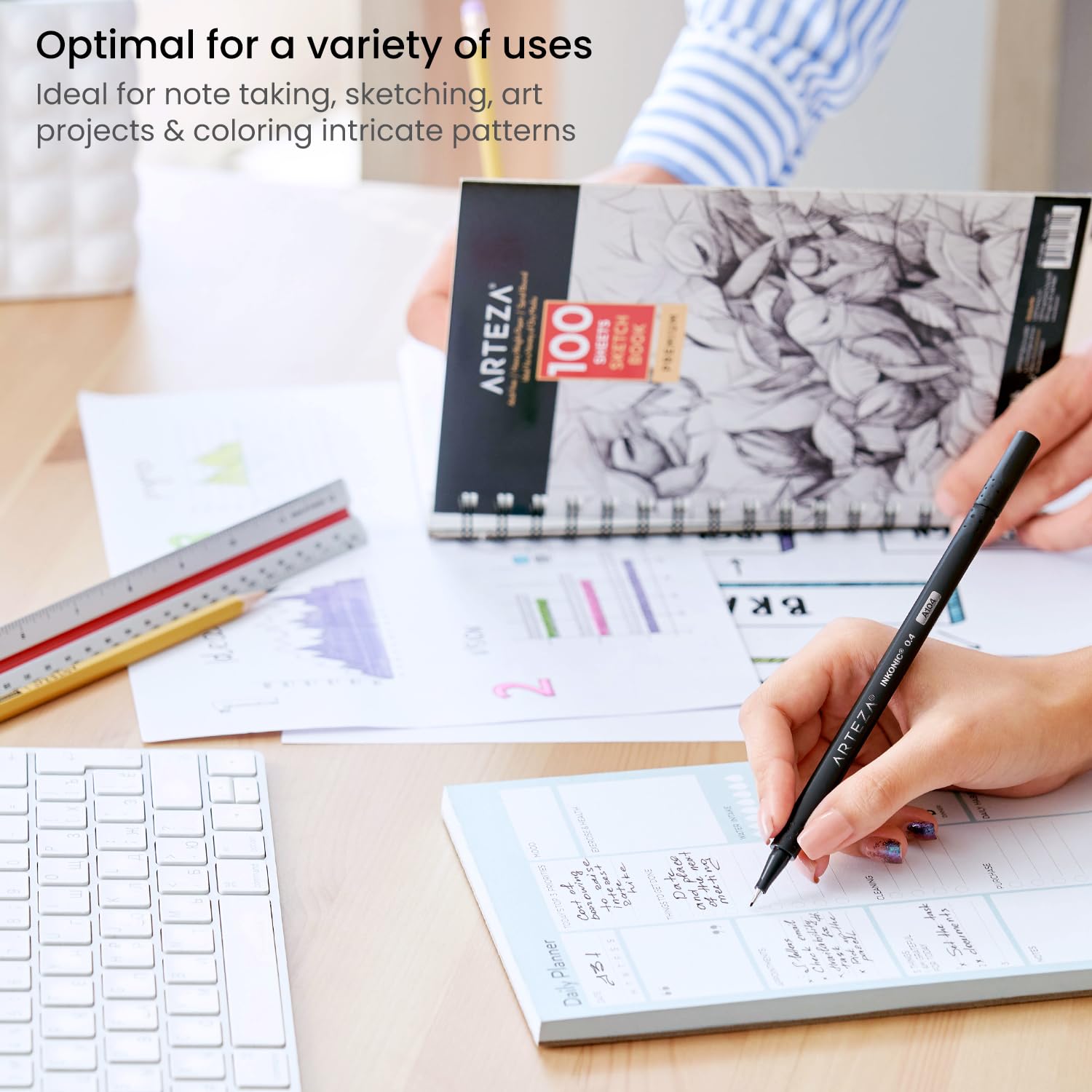 • PRECISION FINE POINT PENS: This set of 12 premium fineliner pens with ultra-fine 0.4mm tips delivers precise lines and meticulous details. Ideal for writing, note-taking, sketching, and drawing. Perfect as your go-to fine point black pens.