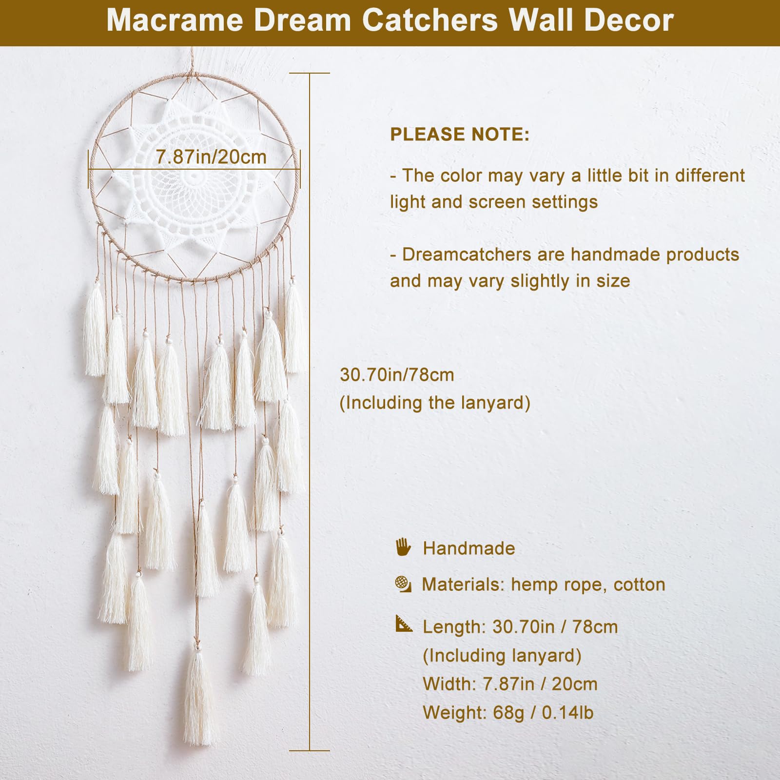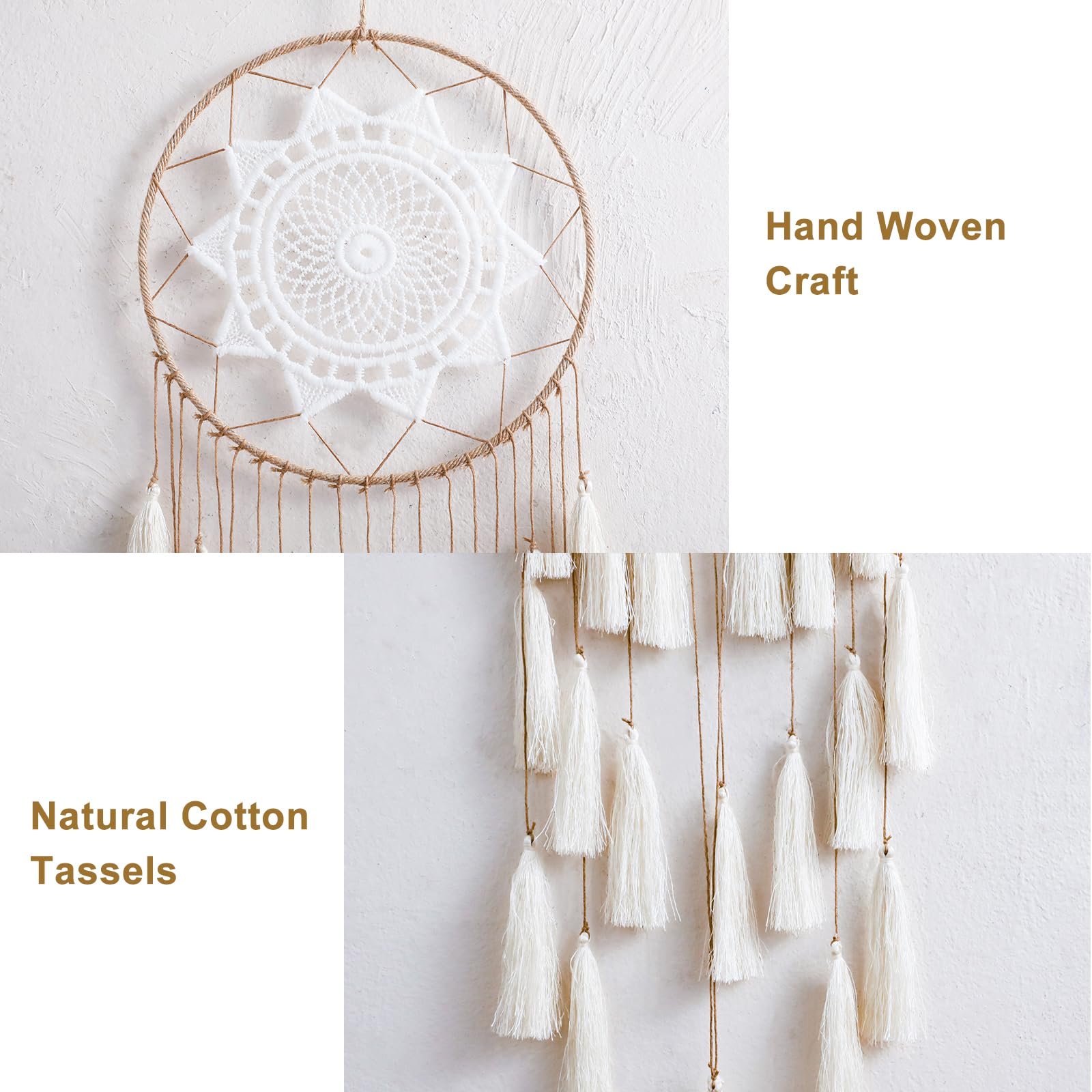 • APPROPRIATE SIZE - The macrame dream catcher wall hanging measures approx 8' x 22', Perfect for hanging in the bedroom, living room, sitting room, balcony and bohemian party decorations