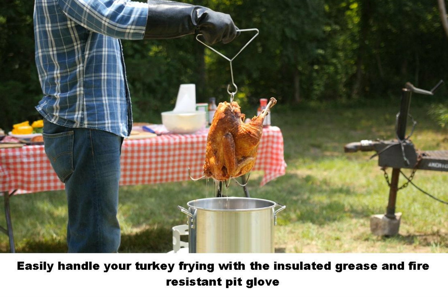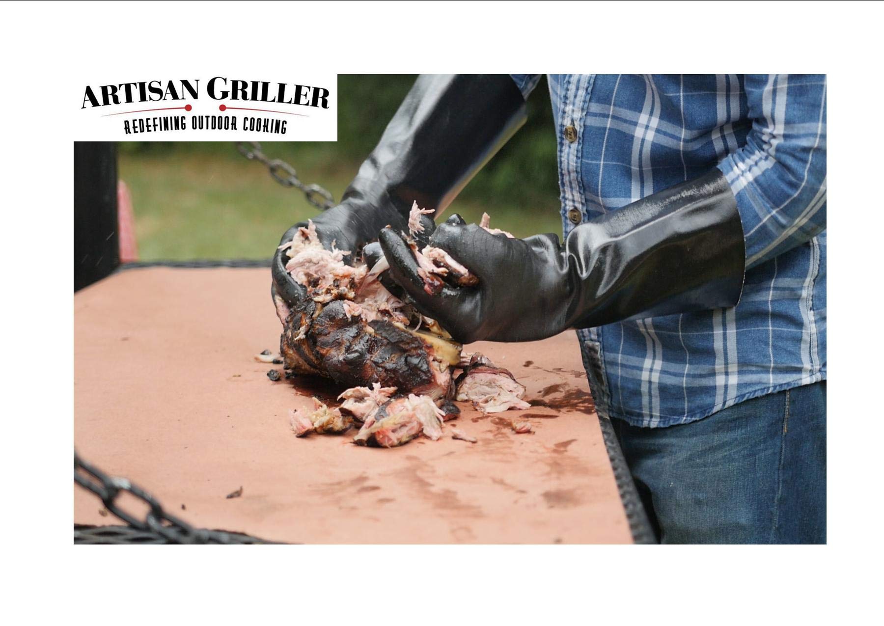 Artisan Griller BBQ, Smoker & Oven glove- Insulated Heat Resistant for Fryer & Kitchen. Great Barbecue Smoking Oyster Mitt–Turkey Fryer, Oil,Fire & Water resistant -(Size 10/XL – Black neoprene)