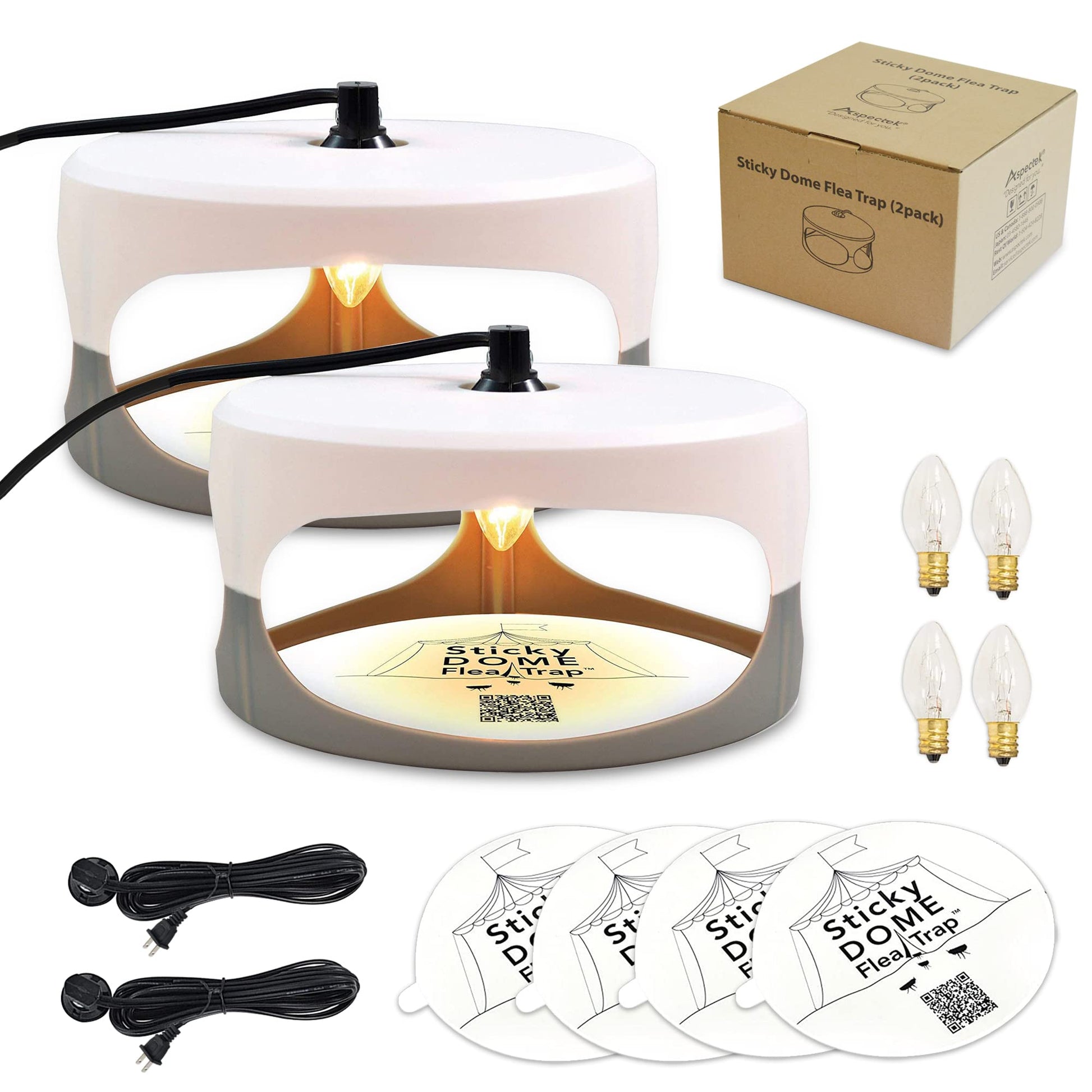 • Complete 2-Pack Kit with Refills: Includes two flea traps, four glue discs, and four bulbs for extended use. Refills are readily available to maintain continuous indoor pest control.