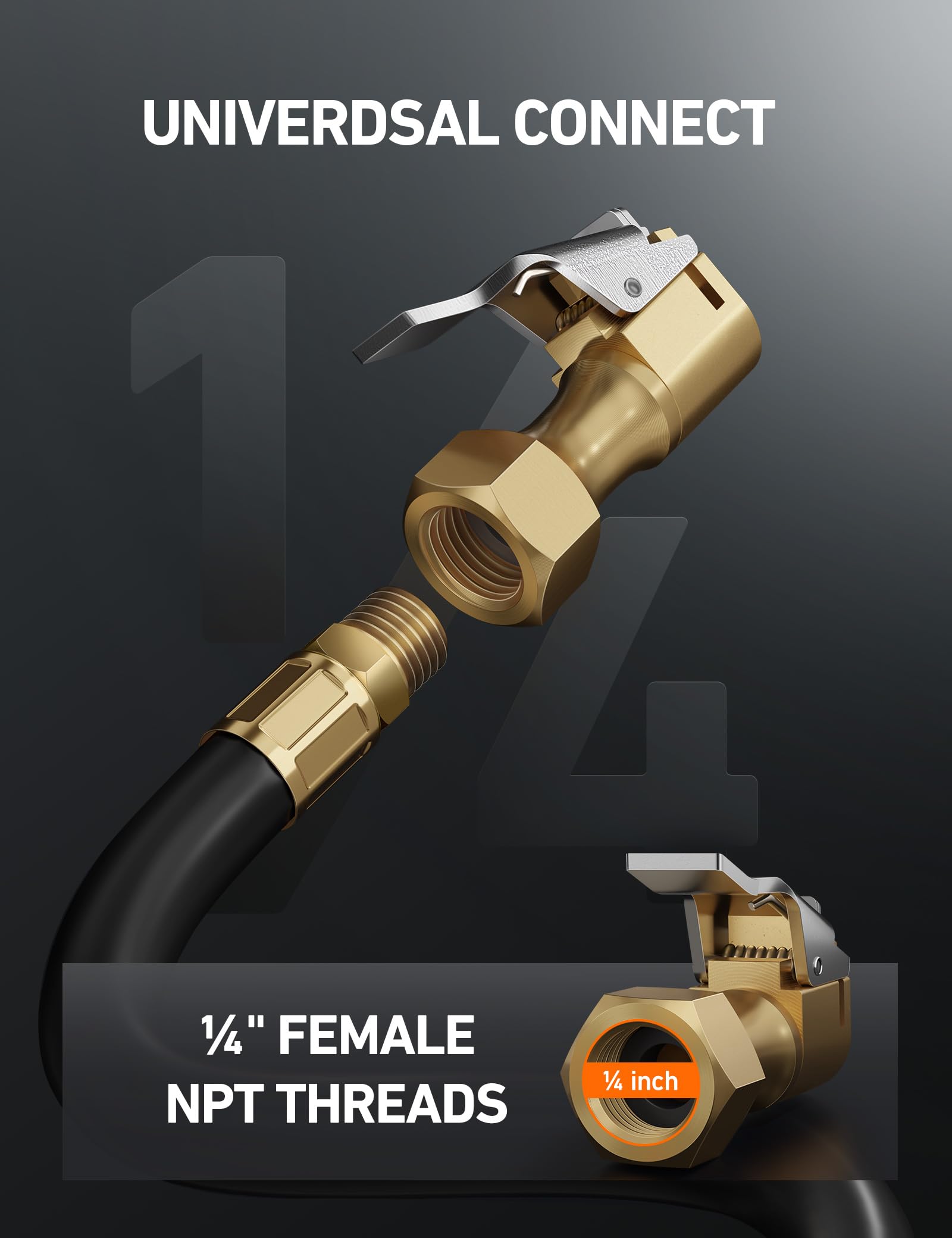 • ¼' FEMALE NPT THREADS fit most air inflators