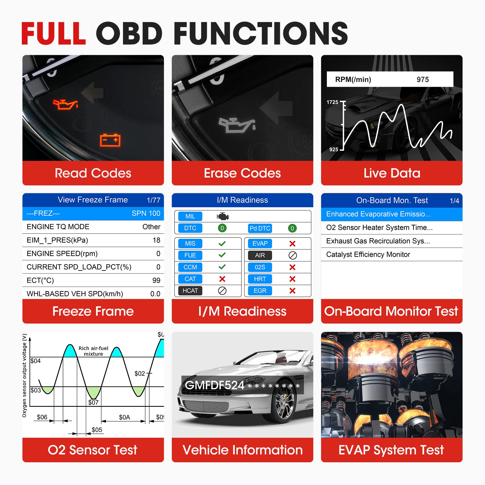 • 🚗Full OBD2 Functions: With AL539B OBD2 Scanner you can operate complete car diagnoses. Such as read/erase code, reade live date and freeze frame, I/M readiness status,O2 sensor test……The most direct and typical functions of this code scanner is to turn off the check engine light (MIL), which is completed via clearing the stored fault codes after the problems are solved
