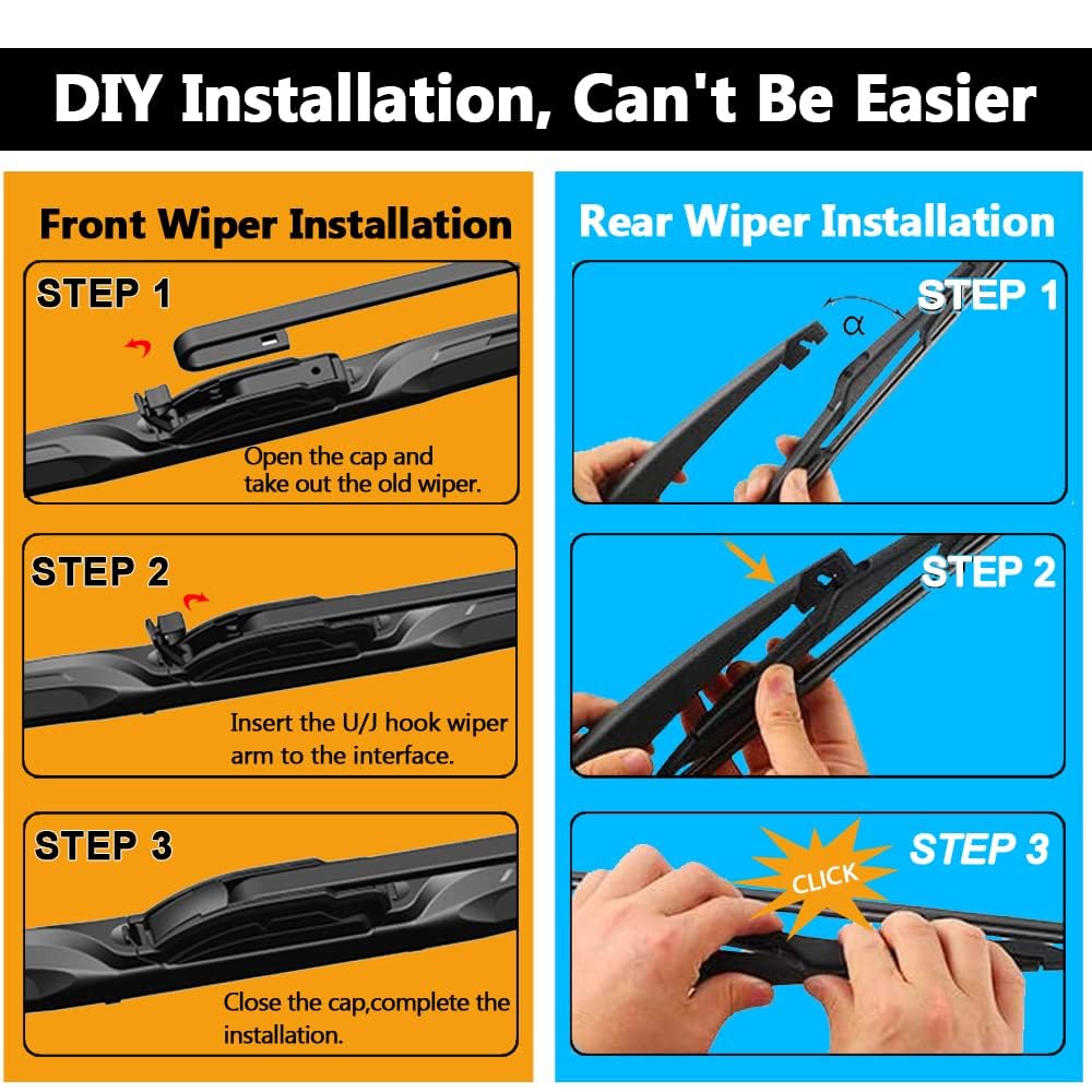 • 【EASY-TO-INSTALL】 Quick and easy to install. fit perfect to your car, like the original parts. It’s installed to the wiper arm by means of J/H.